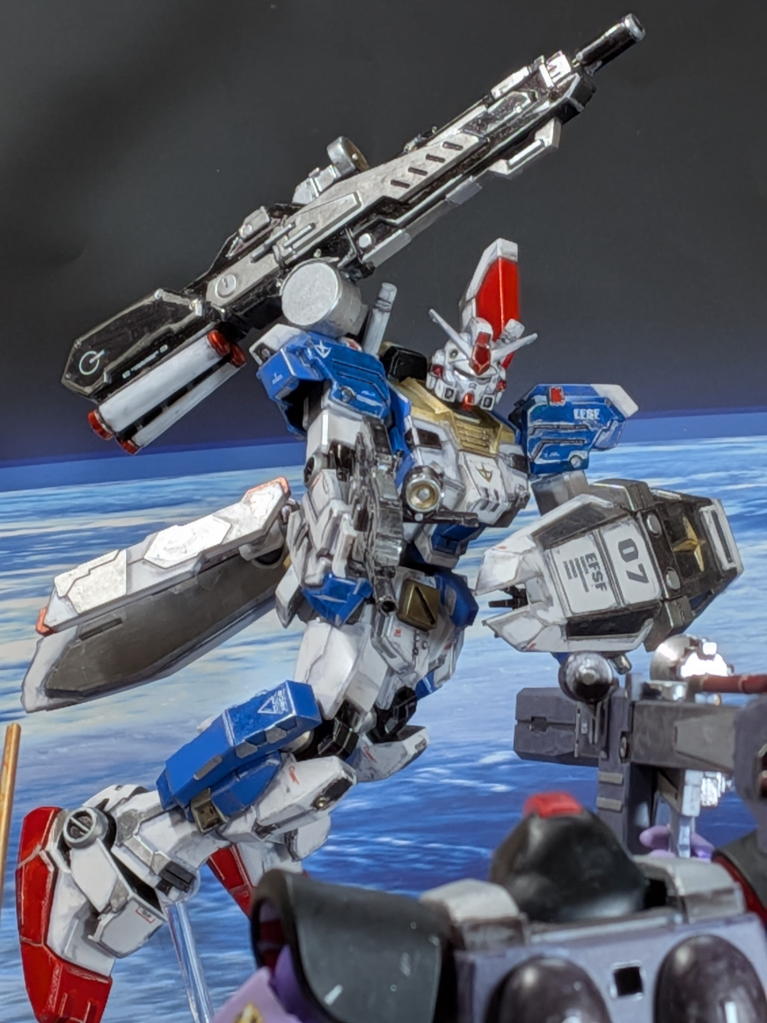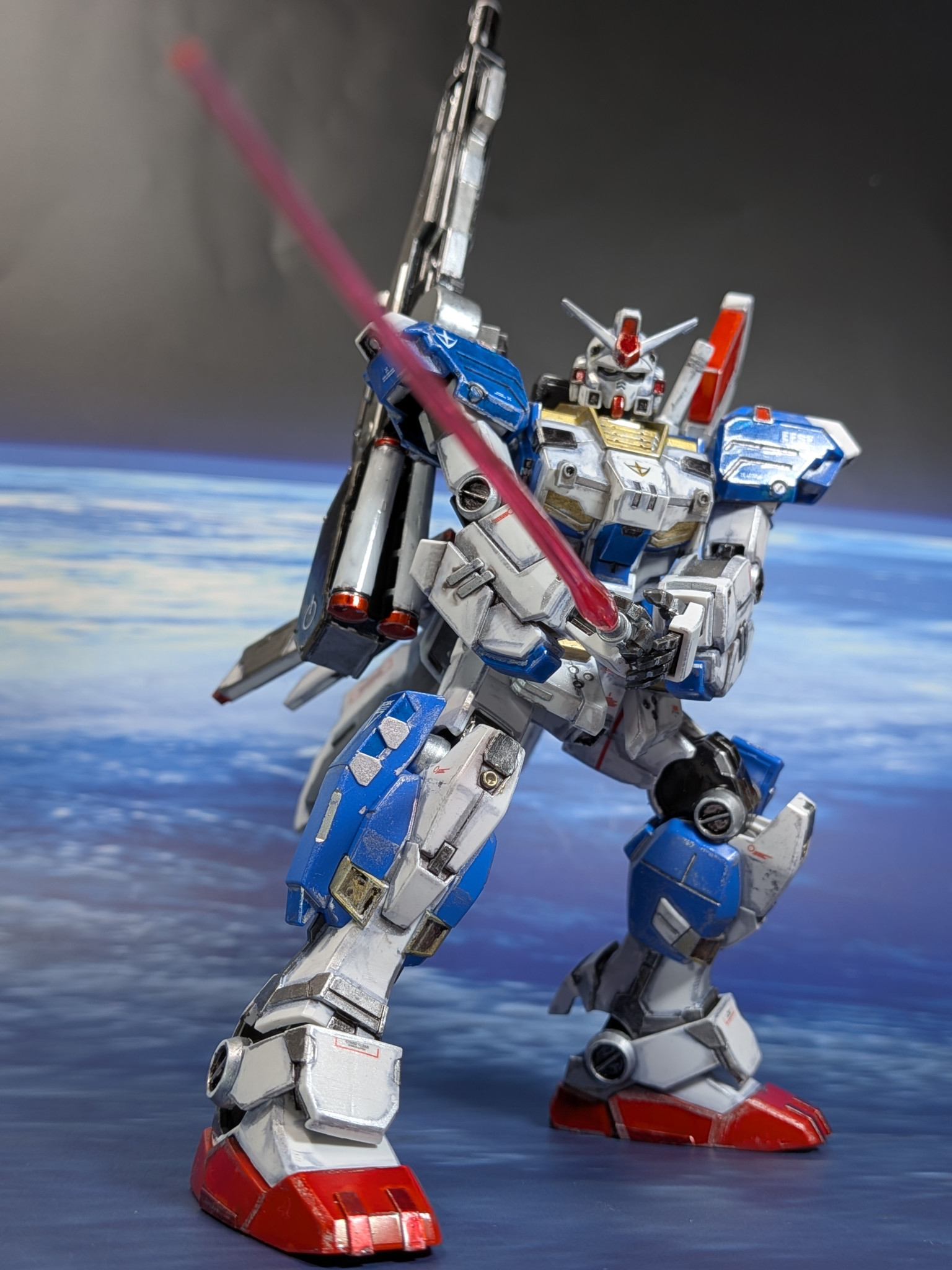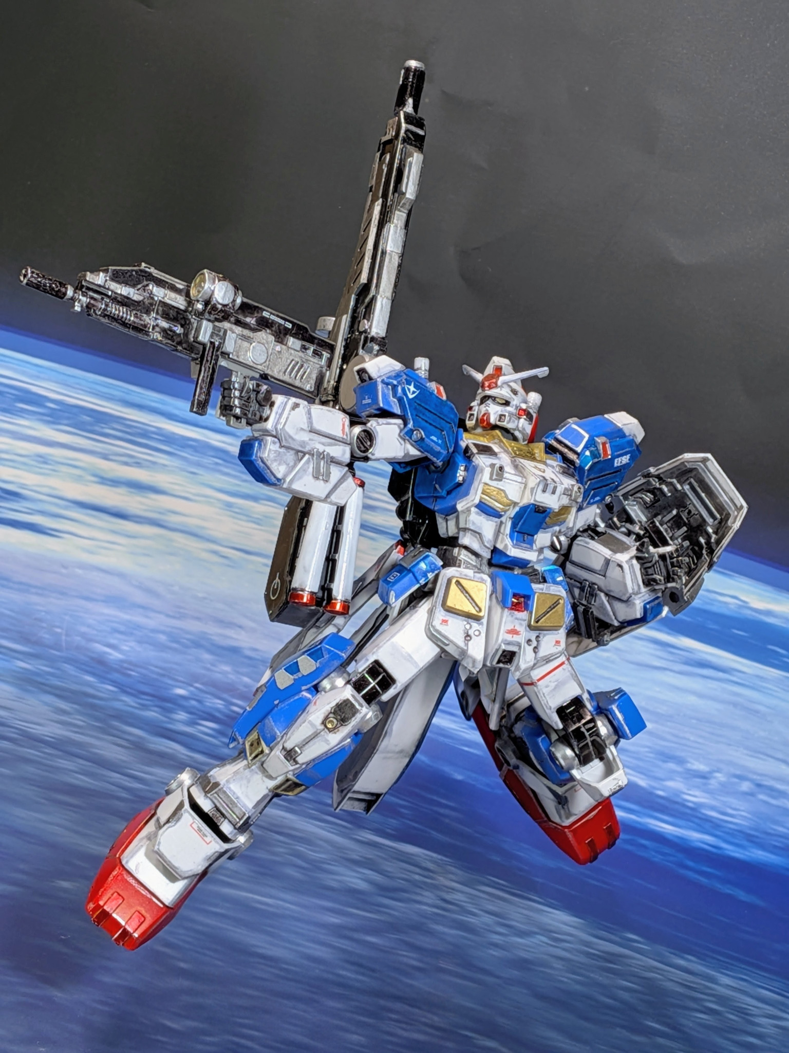 なかなか躍動感がありますが、立体物として見ると思ってた以上に仰け反ってるんですよね(gundam-kao5)