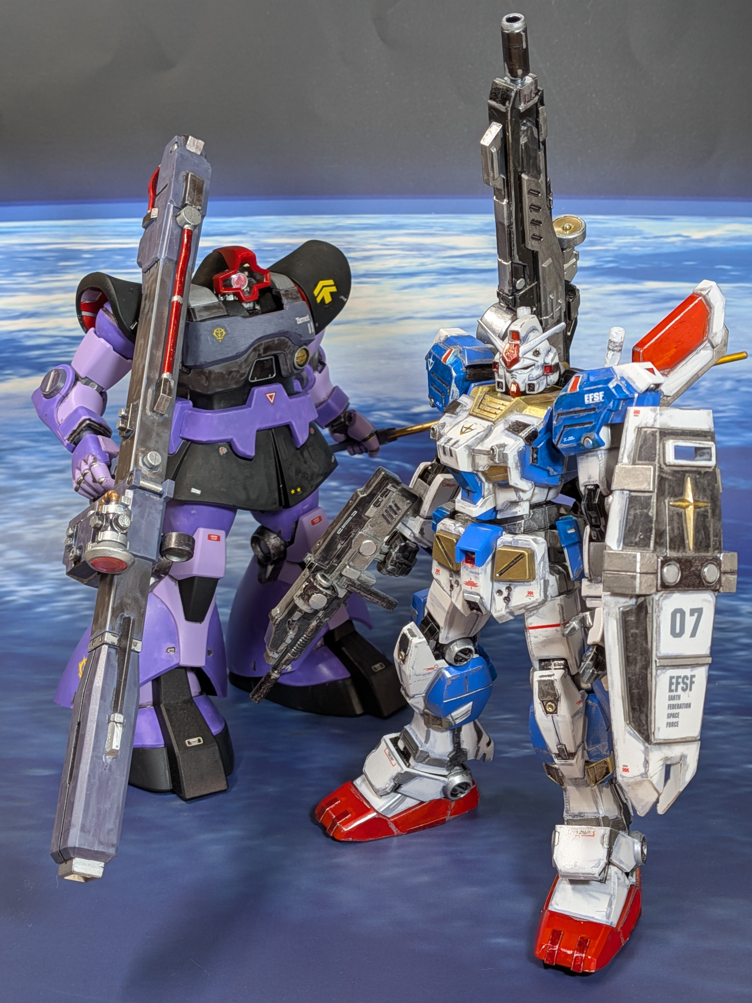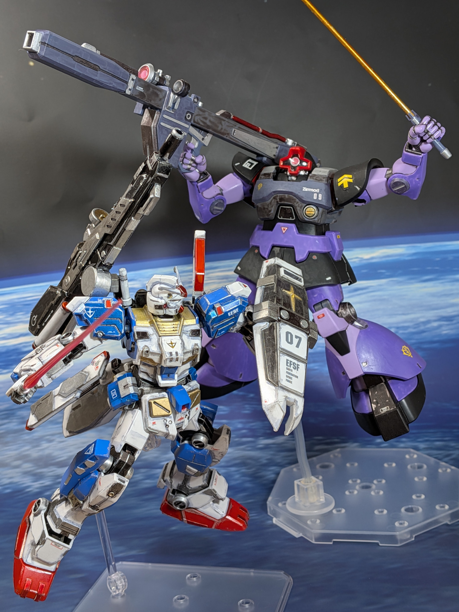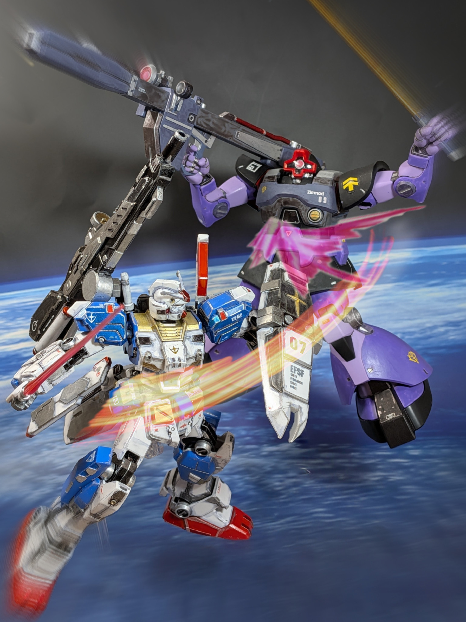 何気に斬ってるガンダムより、斬られたリック・ドムのポージングの方が難しかったりする(gundam-kao1)