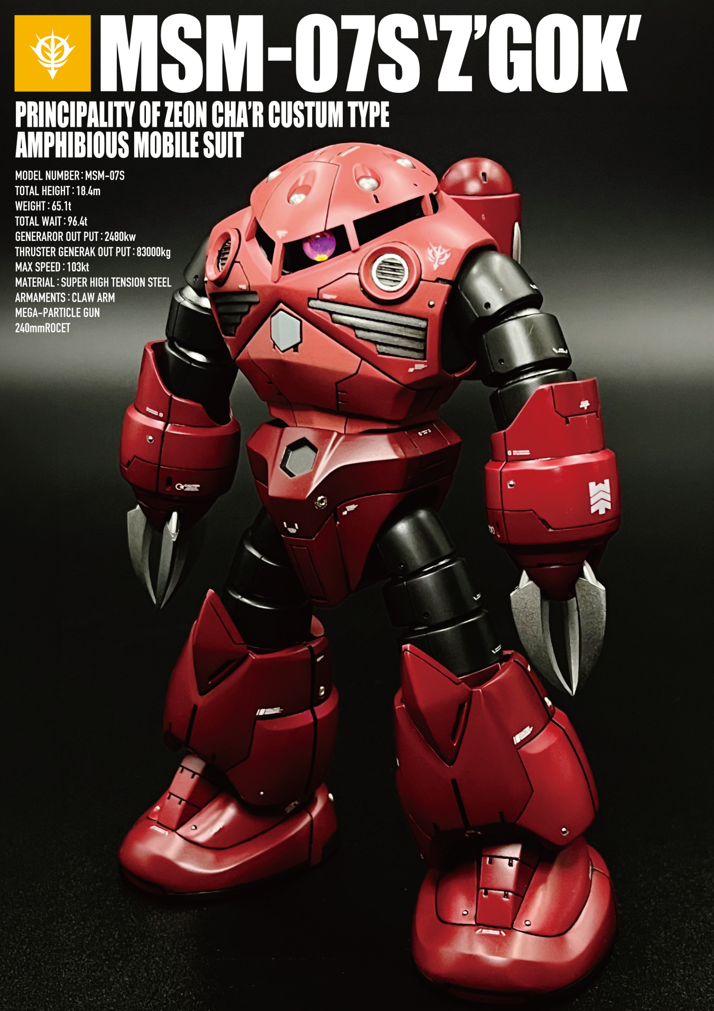 先達の方々のシャアズゴックを参考にさせていただきました。まだまだ未熟ですが、これからも楽しんで製作したいと思います。