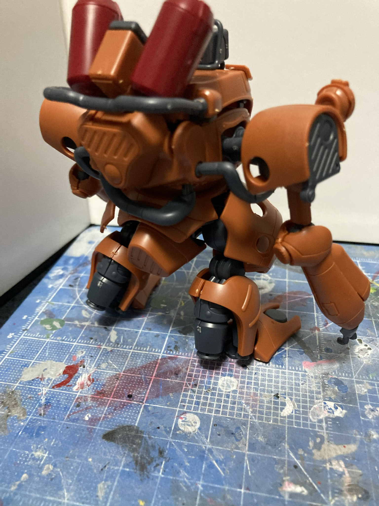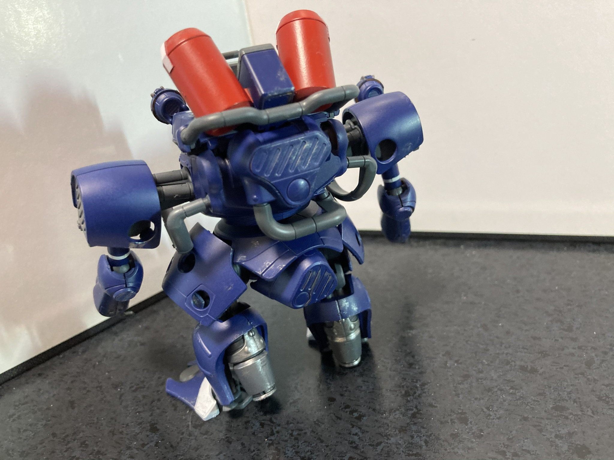 この位置にしたのは正面だとサイズが合わないことと、ドラケンEのサイズ的にザクからはちょうど見下ろされるので、上から見えるように、というこじつけです。