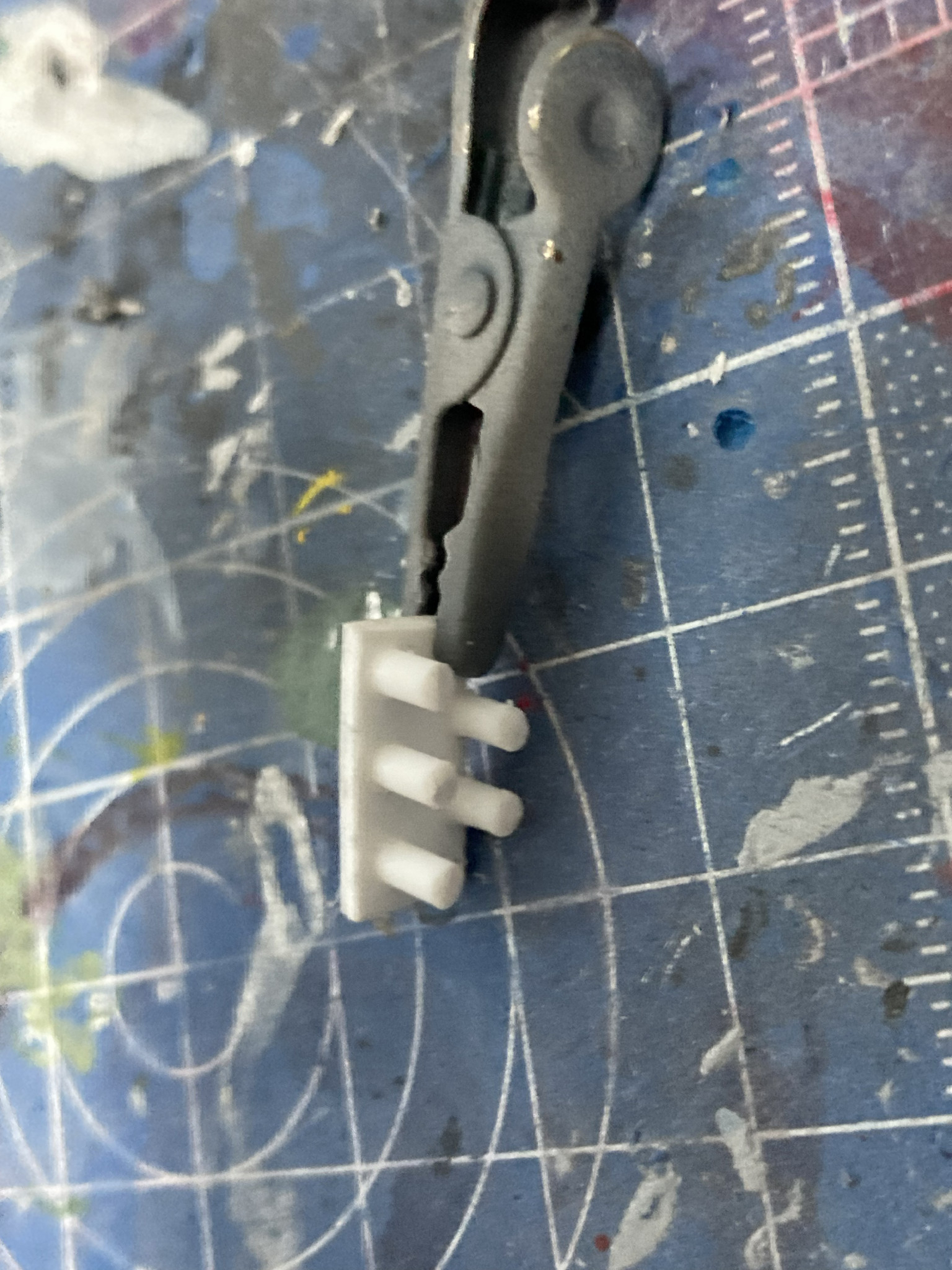 ミサイル部分は元のくぼみ箇所に2mmの穴をあけ、そこに同寸のプラ棒を入れました。