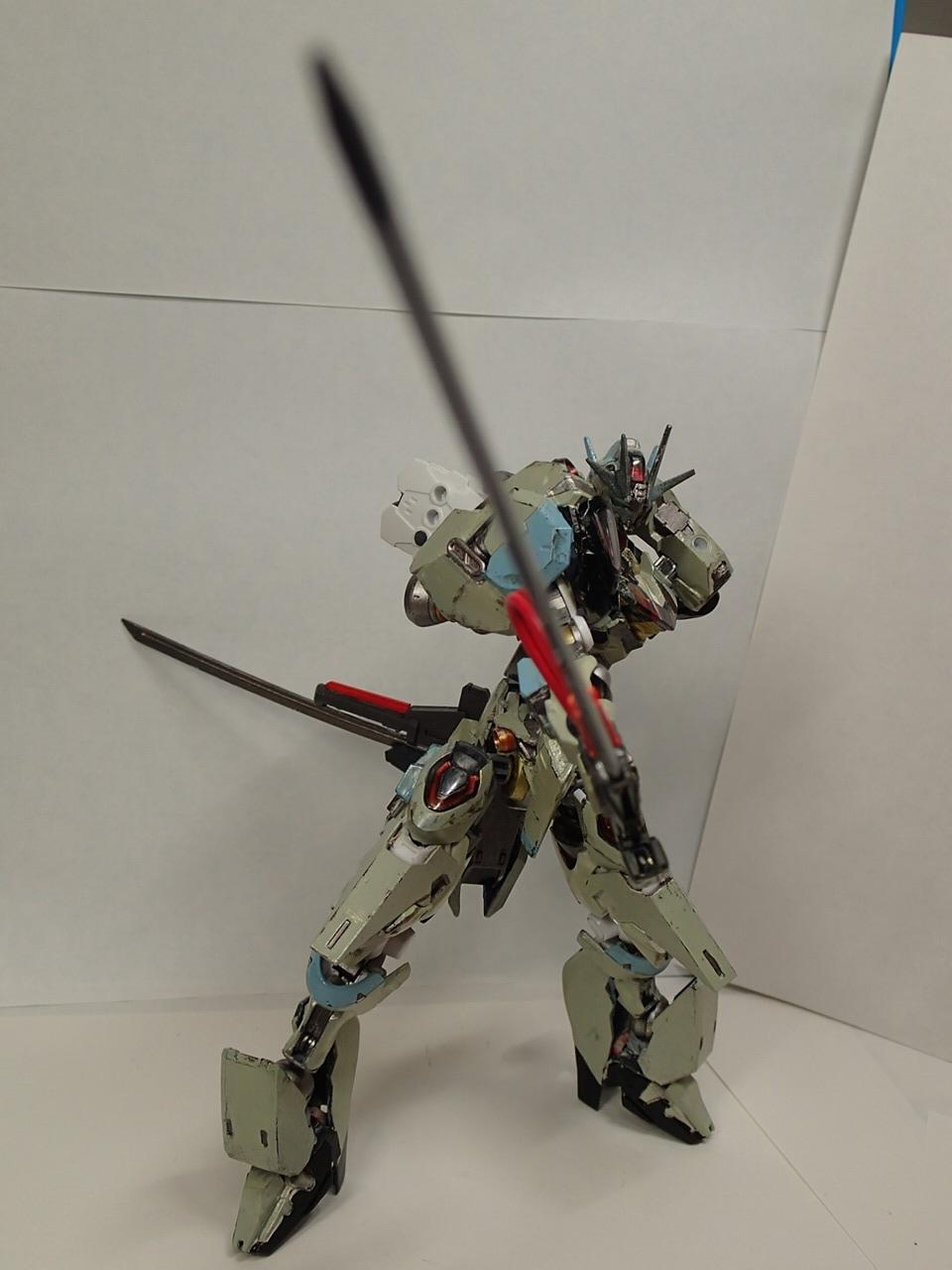 エアリアルをもとに、腹部をコアガンダムで延長したり尾部にキャリバーンのパーツをつけたりしています