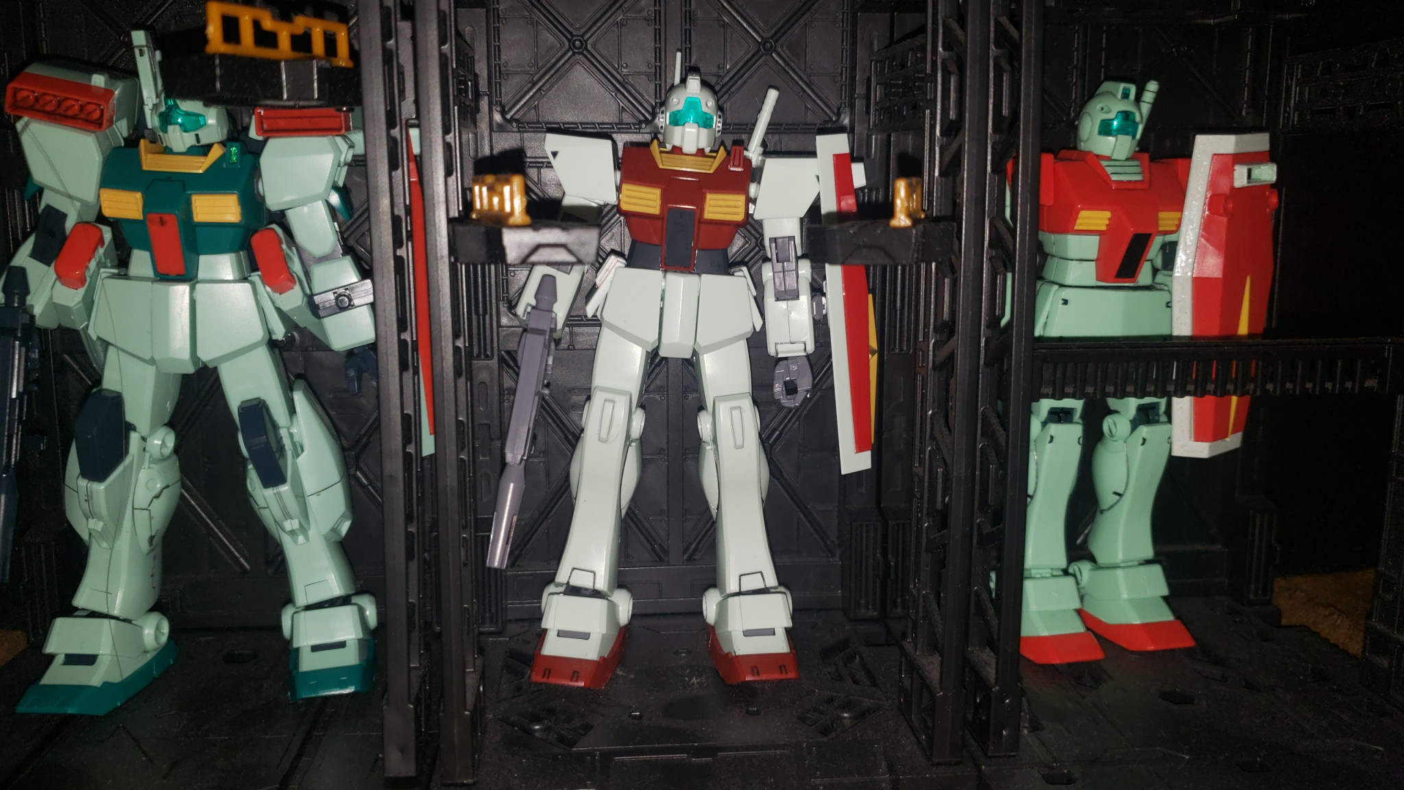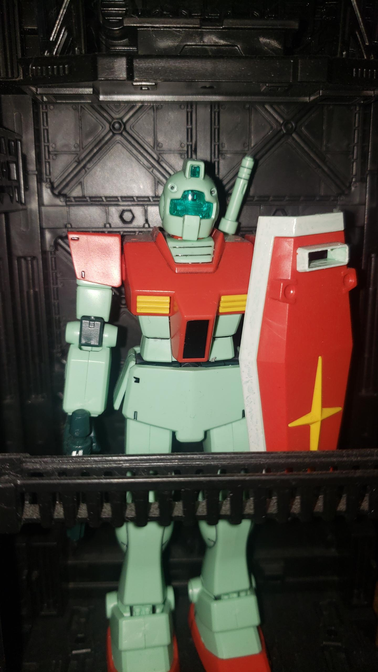 初代ガンダムは、肩関節が、接着剤でくっついてしまい、肘からしか可動しなかったのが、うそみたいに、今のキットは素晴らしいですね。