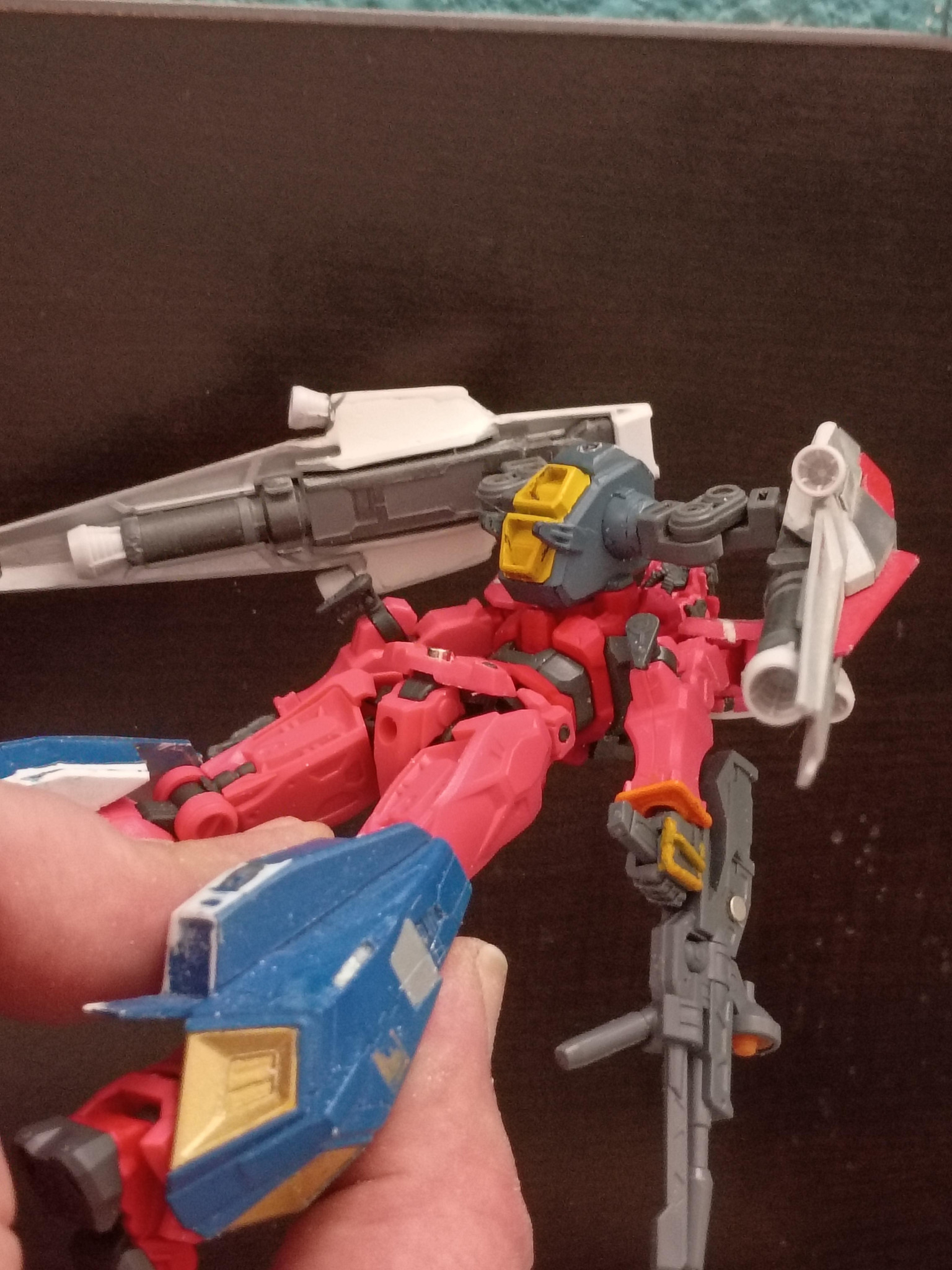 これらのパーツは、以前製作した「Age 2」のカスタム機で使用した「メテオホッパー」のものです。今回こちらで使用するために新しいセットを購入する前に、仮組みをしてフィッティングを確認しています。