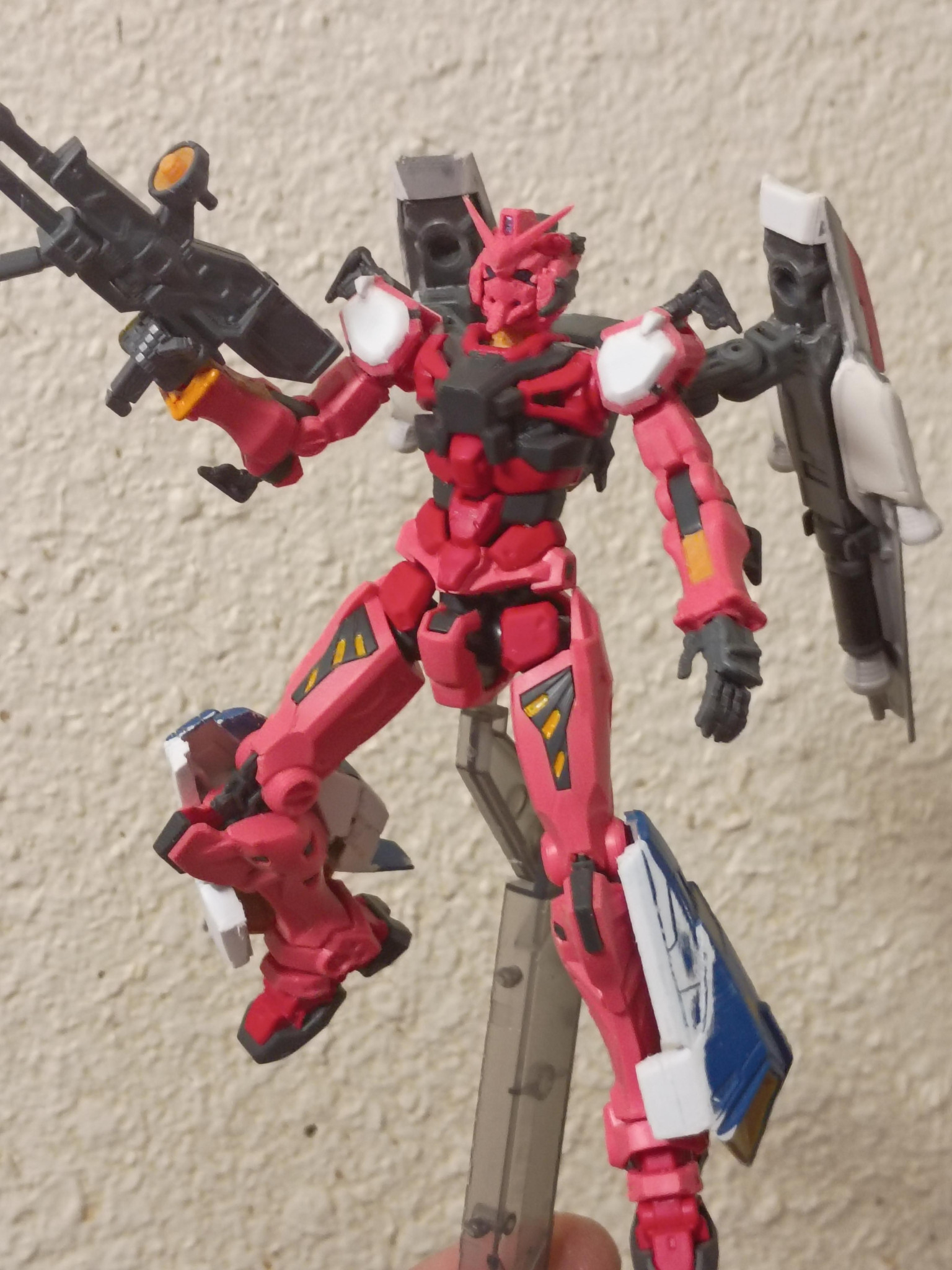 これが私の「レッド・ガンダム」プロジェクトです。当初はフルアーマー仕様にカスタムするつもりでしたが、途中で計画を変更しました。そこで、高機動型アーマーの装備構成にすることに決めました。