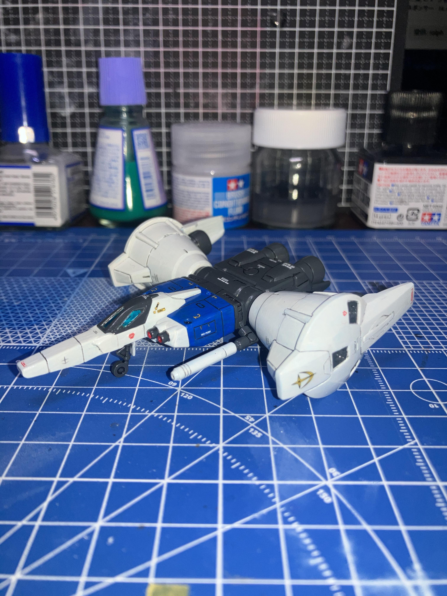 HGUC GP01Fb付属のコアファイターを、スジボリ、改造、筆塗り全塗装を行いました。