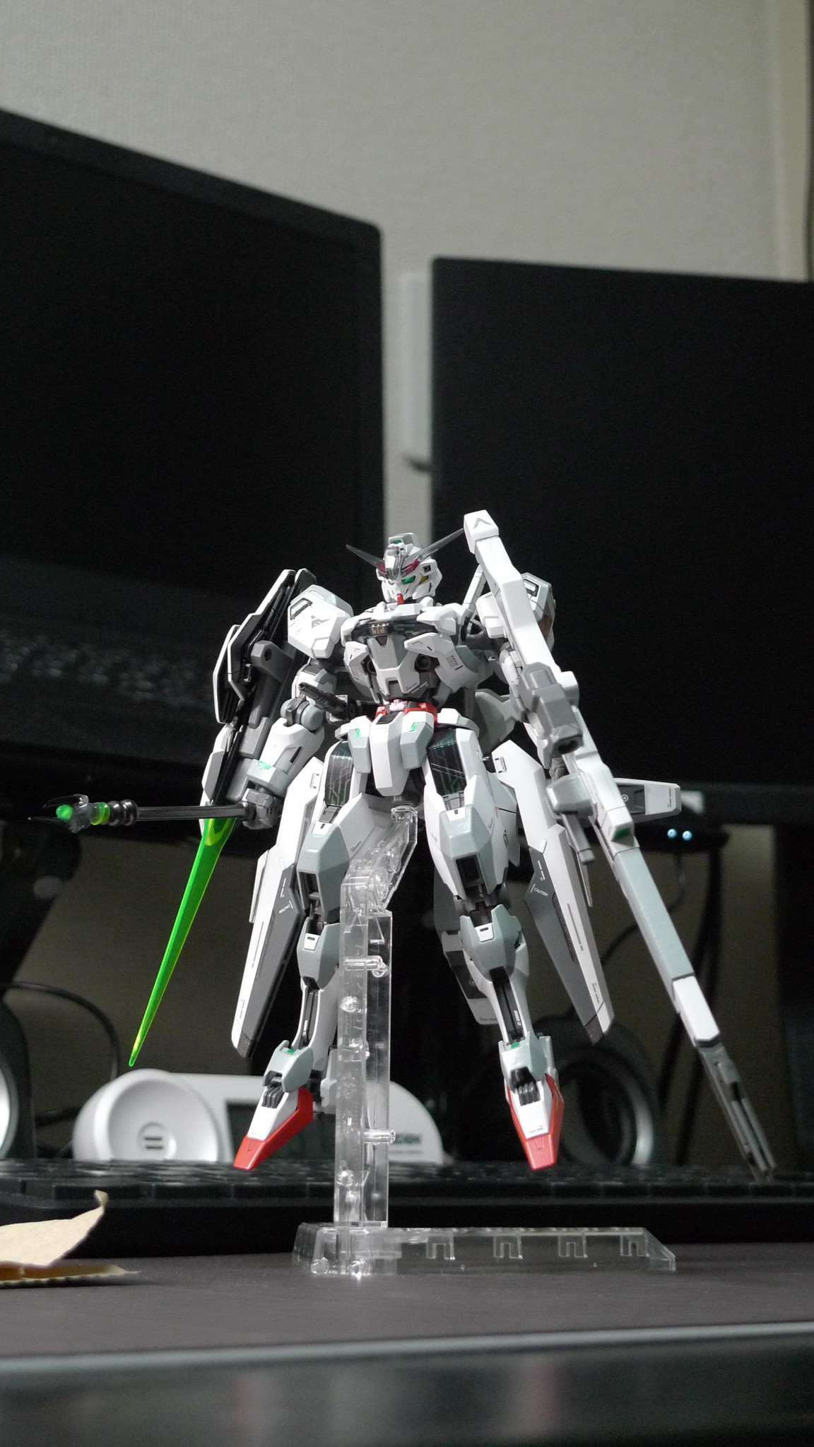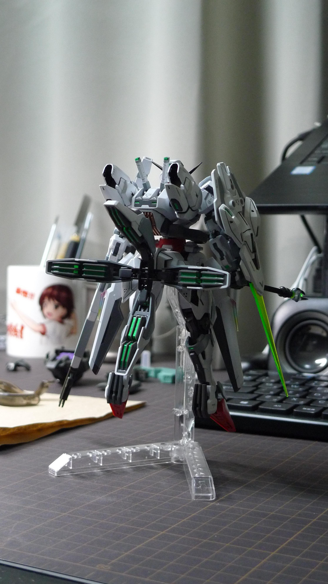 バリアブルロッドライフルはクアドラスラスターを外して上下をひっくり返し左肩に担ぐように変更しました。