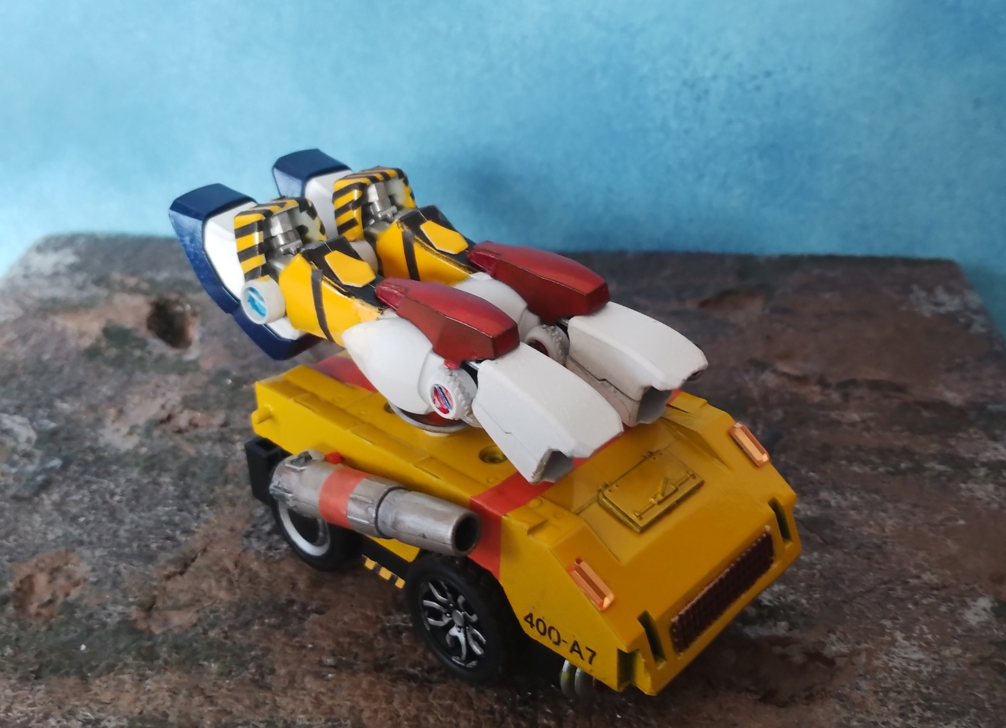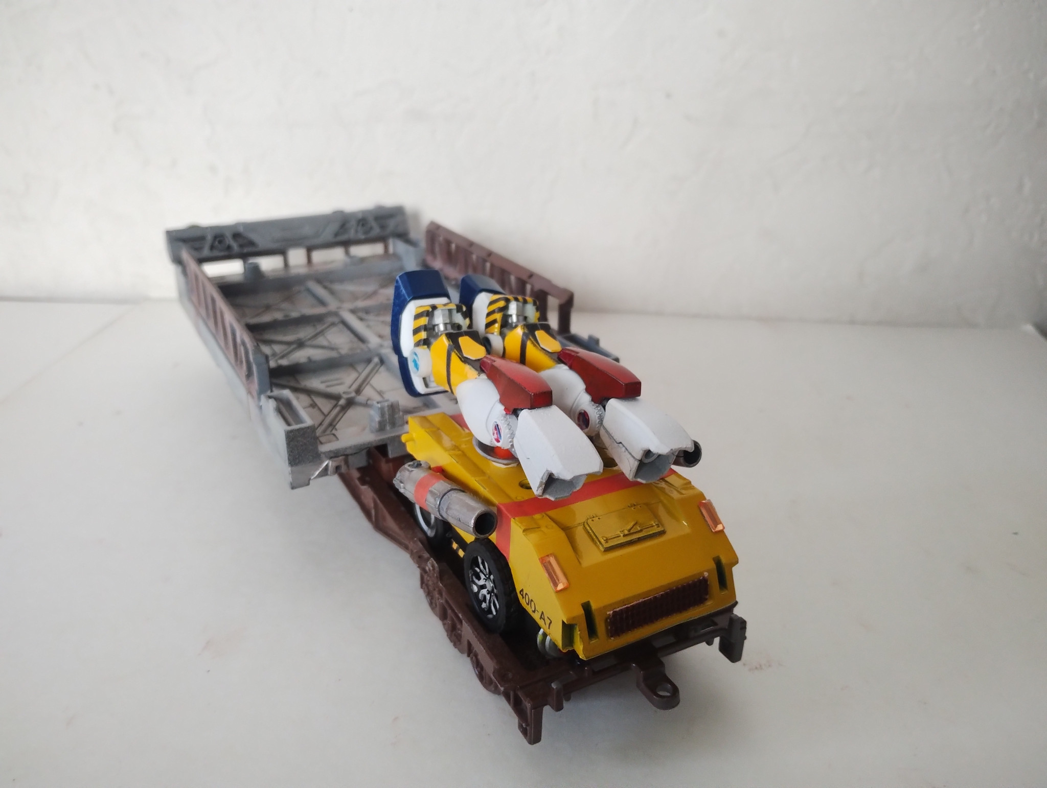 じゅね HG 2026.03/22更新 【その3】バンダイの合体モビルスーツ 48 7 いいねしたモデラー(7) 0 0 作品を共有 【STRX-75】Gストライカー 分離したシャダンガムの脚部を搬送する装輪装甲車、という空想でA社っぽくつくりました。前2作の続きです。ガンタンクの底面とガンキャノンの240㎜砲を使用しています。「連邦救助隊」的なカラーですエナメルで汚したら砲身の可動部が割れてしまいましたGワゴン(前出)にも搭載可能砲塔を磁力アームに変更して救助隊風にしてみました。I科学っぽい箱絵です。 コメント コメントをして応援しよう コメントにはログインが必要です じゅね ガンプラでそれっぽいモノを作ってます。 9 【その2】モビルスーツミニチュアシリーズ 【KOKIM-88】MS回収列車 Gハーキュリー 8 【その1】電車がくるとあらわれる 【KOKI-078】軌道戦士シャダンガム 11 アイをこめて 【RX-12】スペルドガンダム 15 さらばウルトラガンダム 【MSZRX-00693】ZNガンダム じゅねさんのページ この作品をお薦め作品に設定する Please login to update your profile! Please login to update your profile! Please login to update your profile! Please login to update your profile!