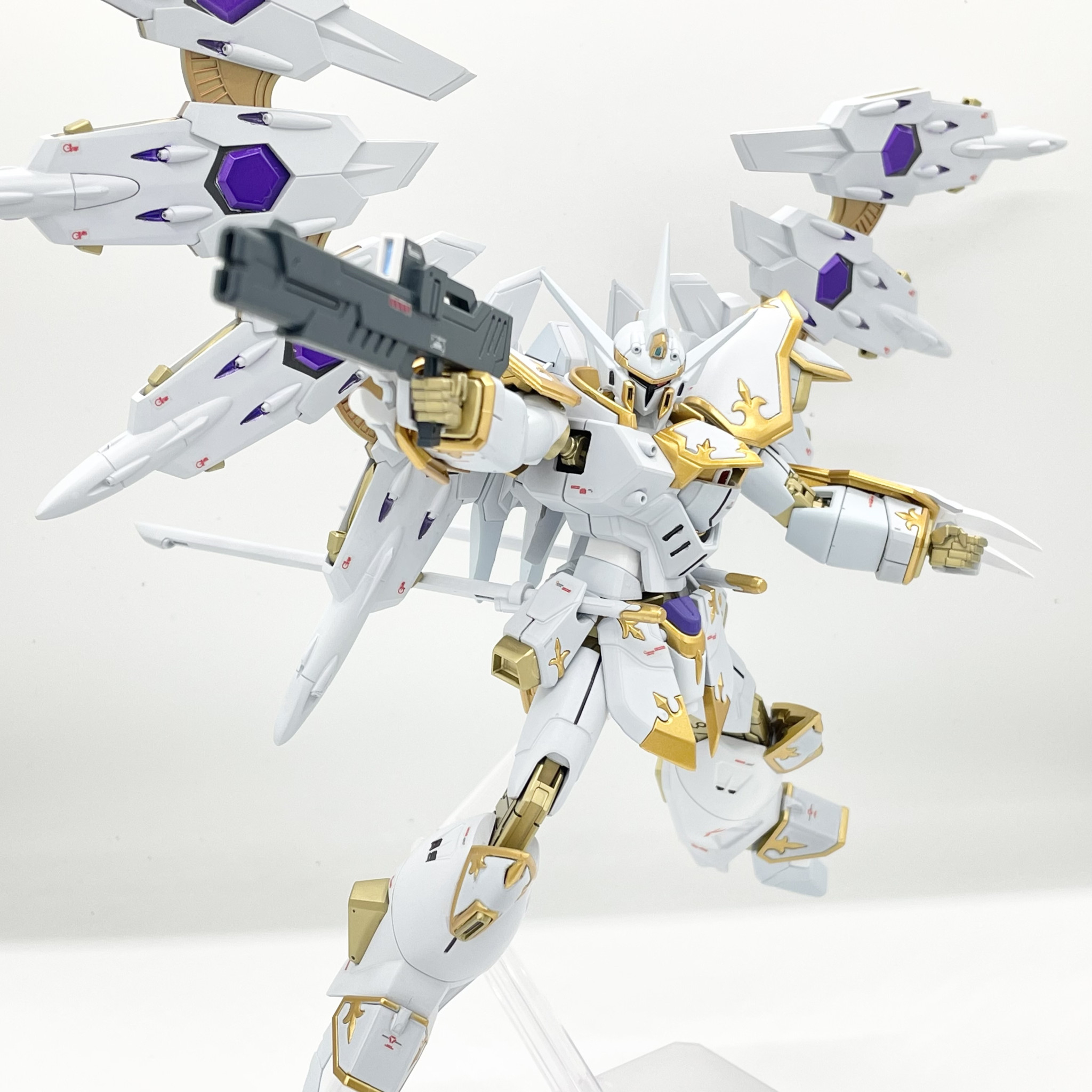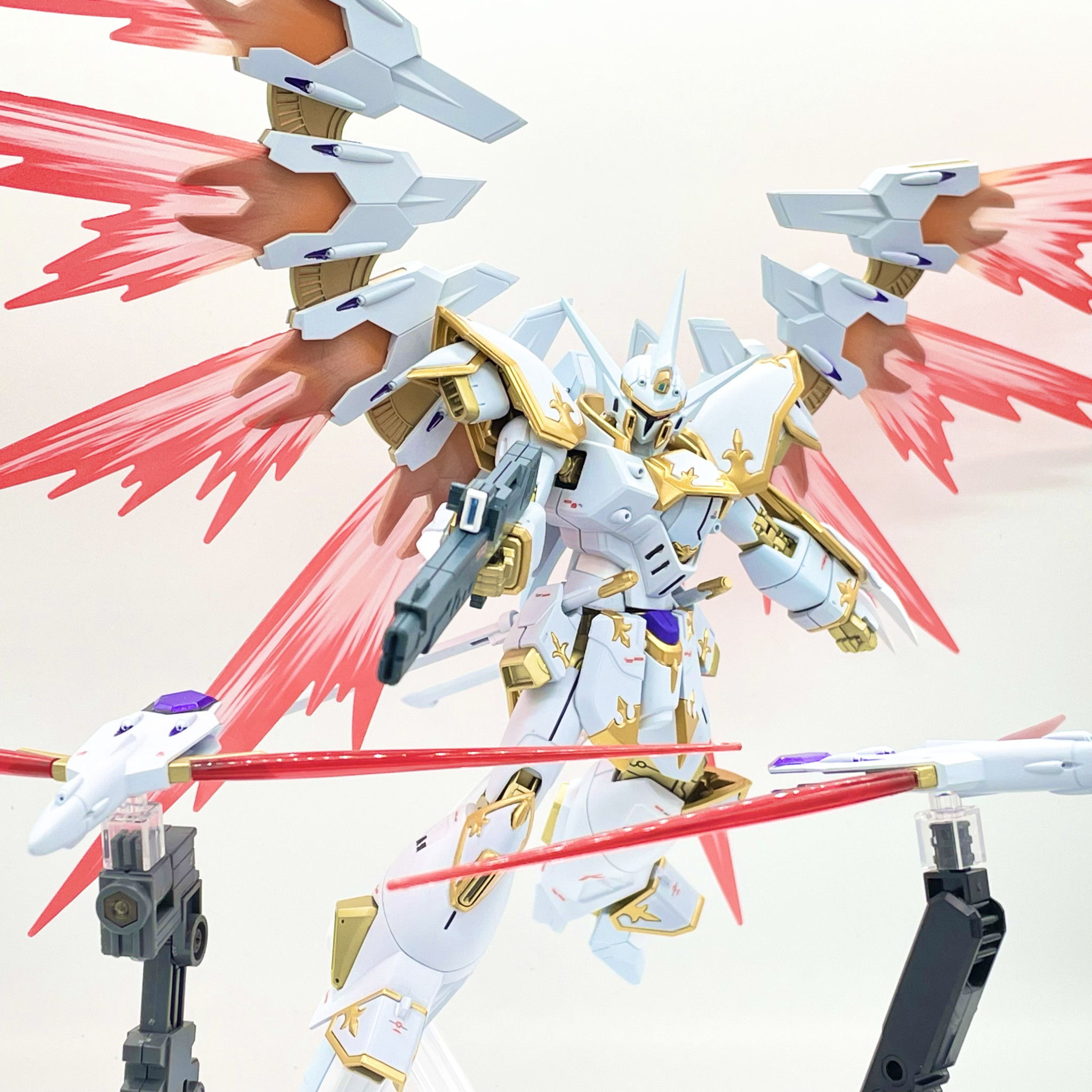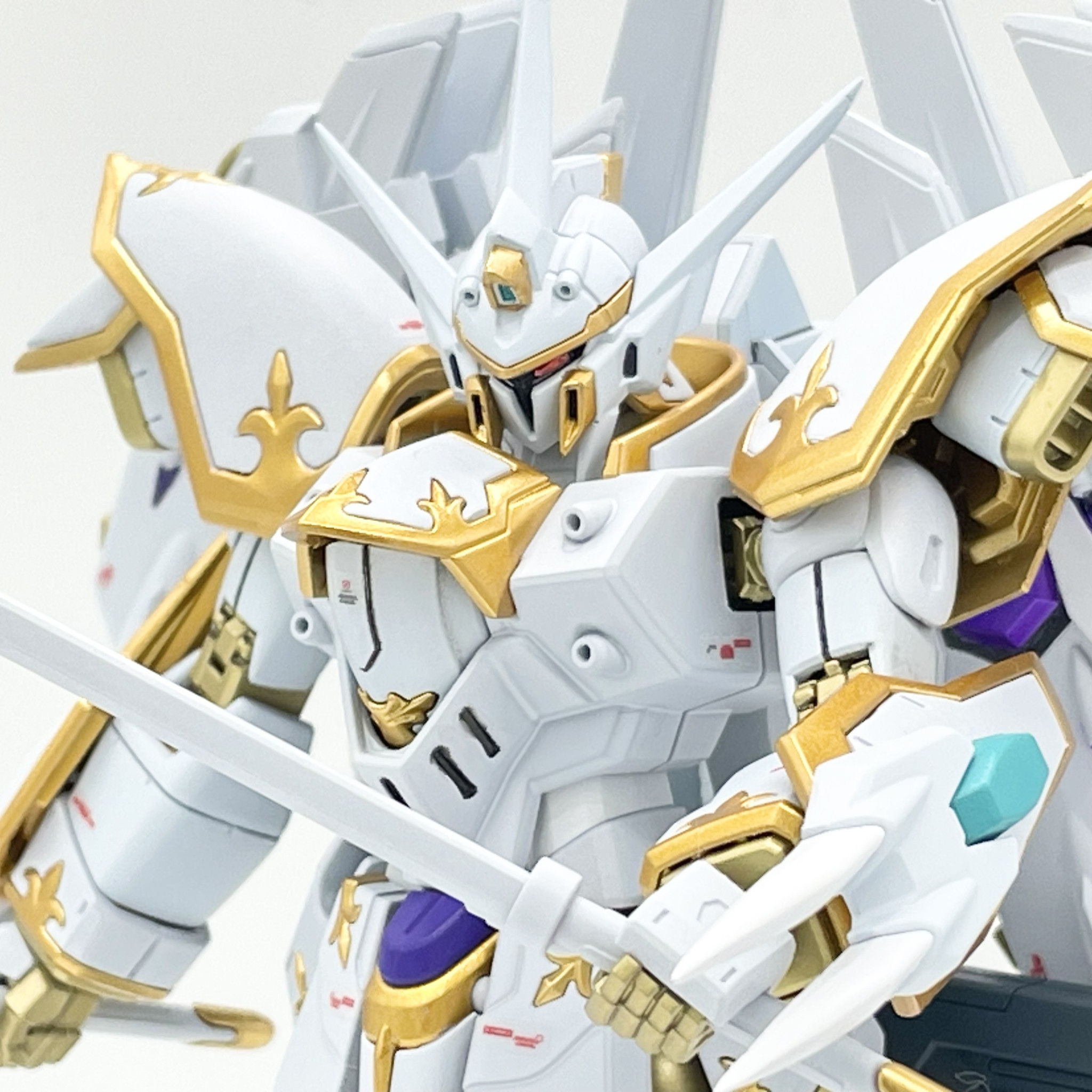 合わせ目を消した都合上、金の装飾はマスキングで塗装しました。デカールはRGの余っていた物を使用しました。