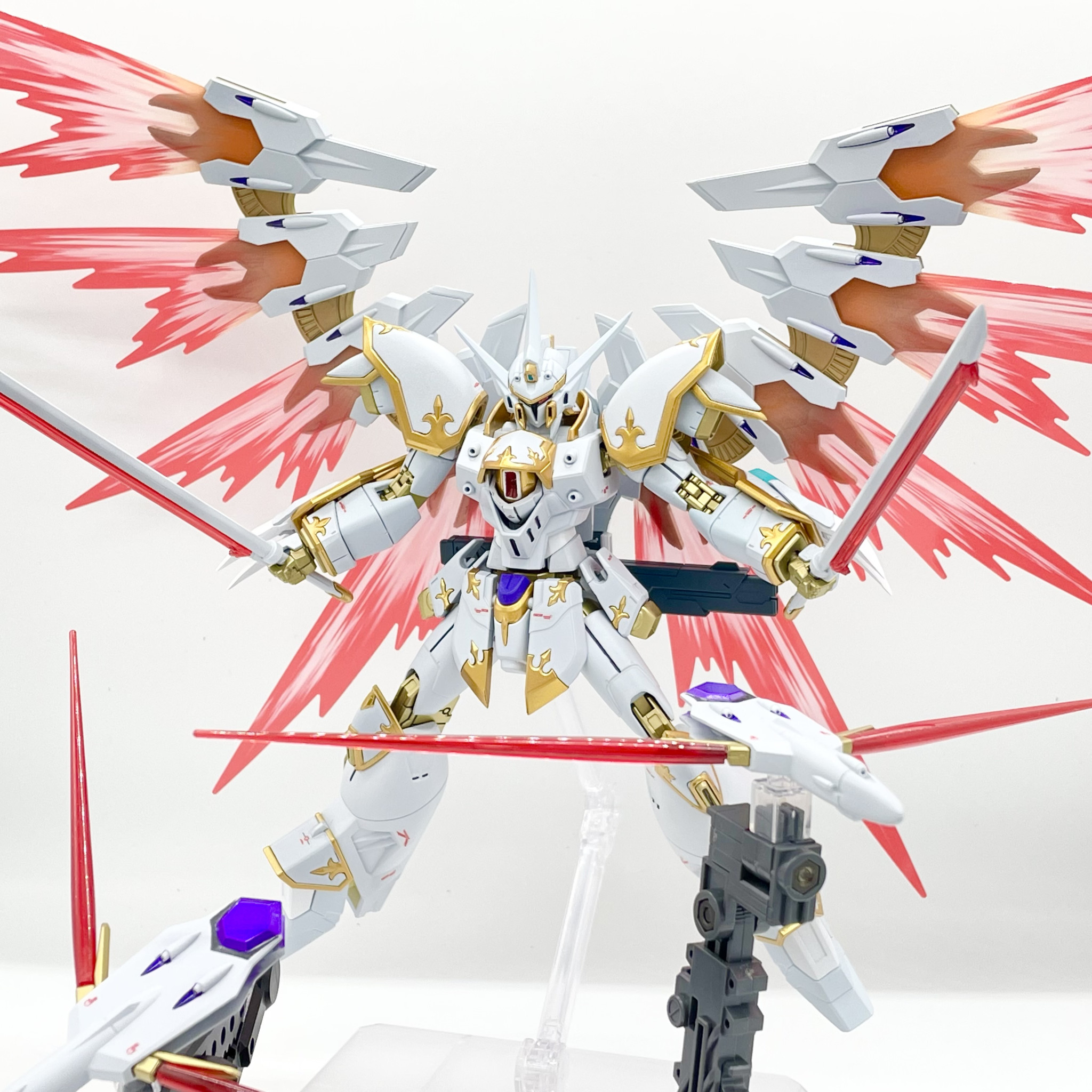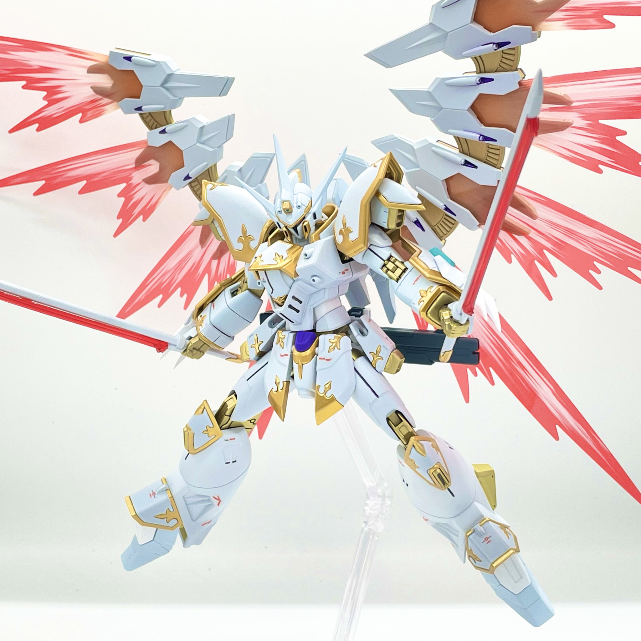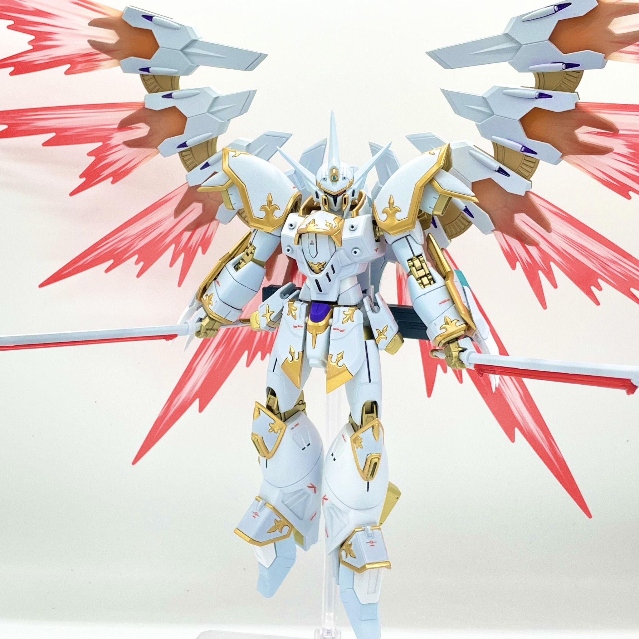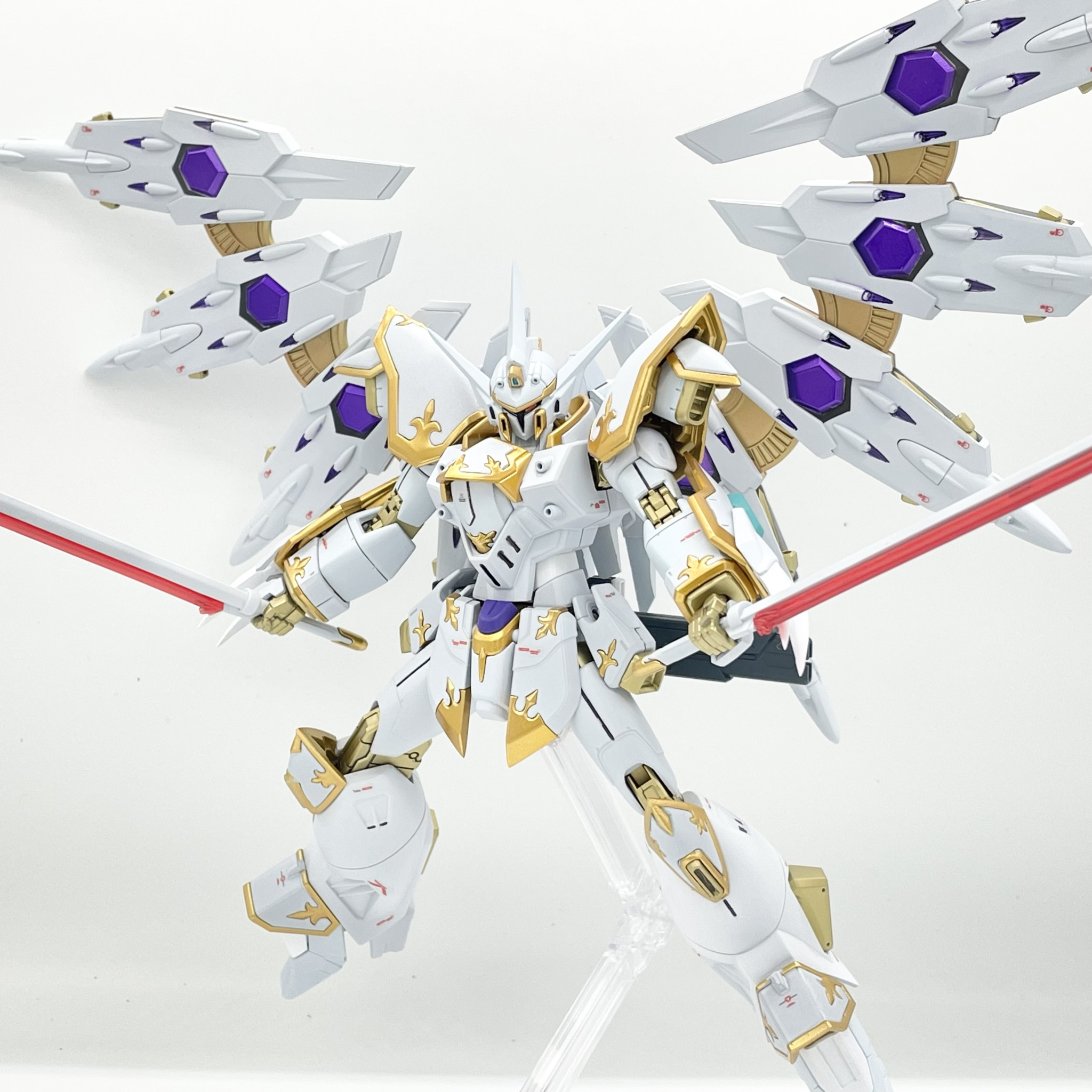 合わせ目を消した都合上、金の装飾はマスキングで塗装しました。デカールはRGの余っていた物を使用しました。