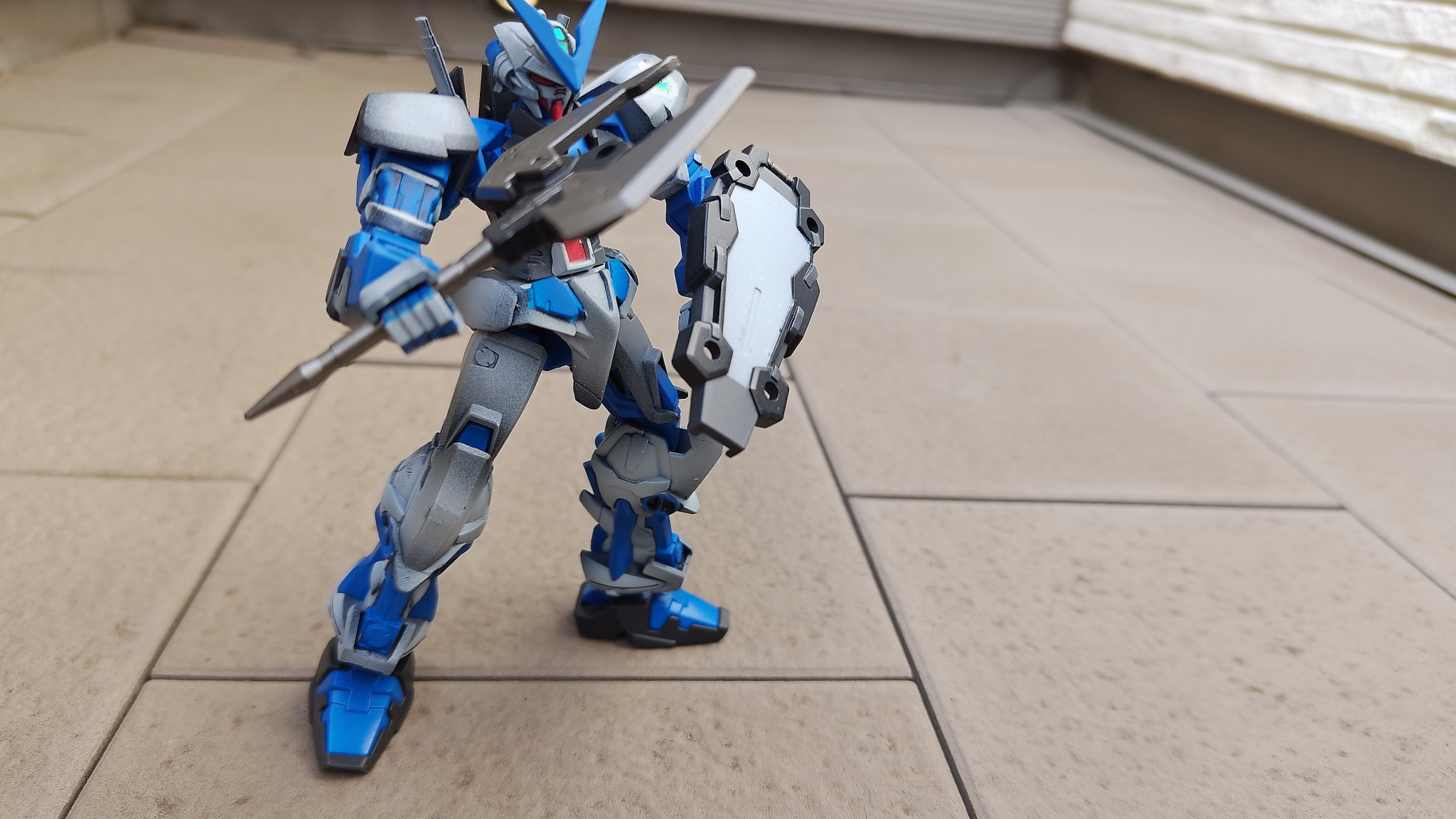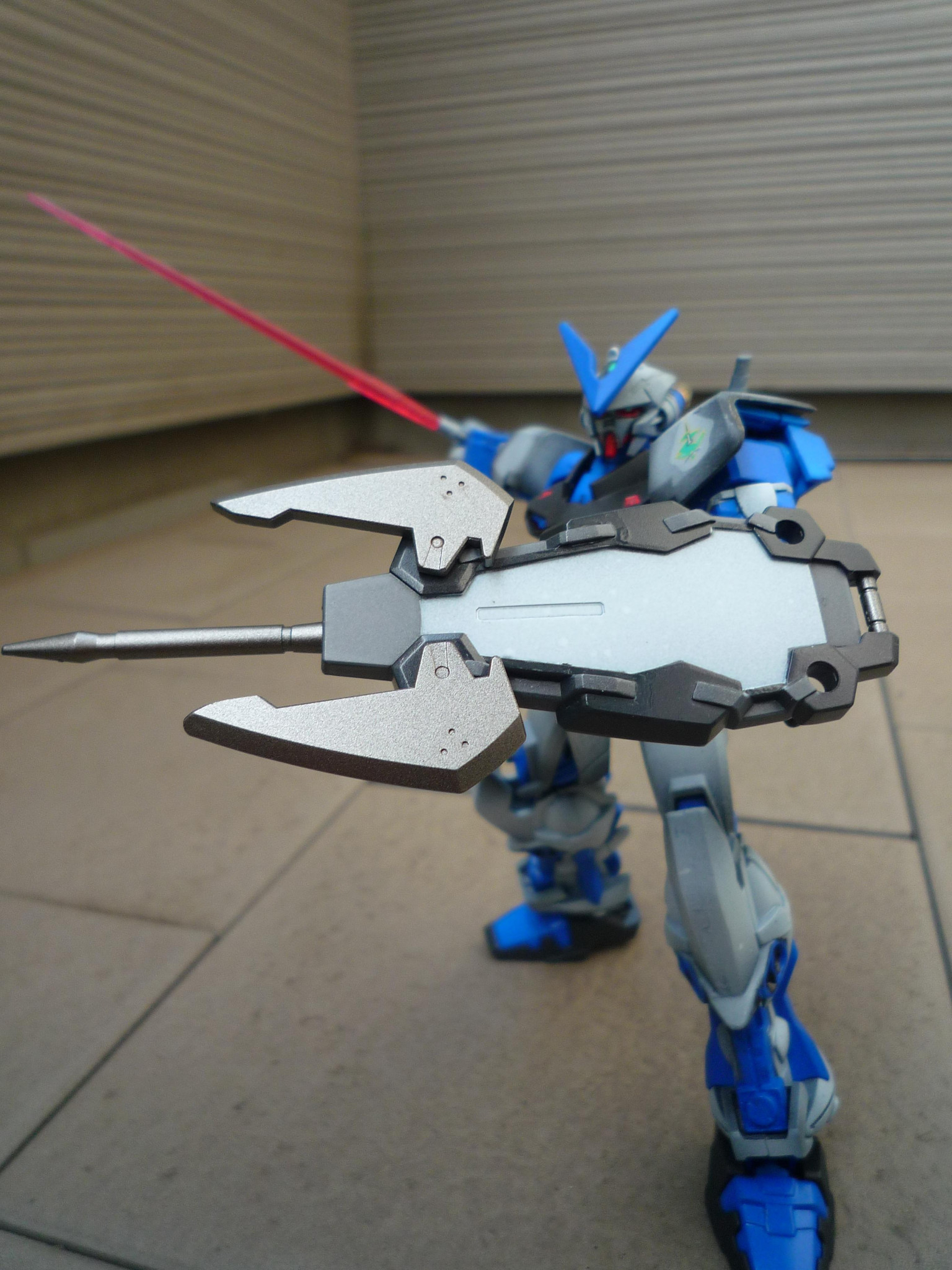 シールドから斧を取り外し可能。HG用とはいってもこのアストレイとは手の企画が違うらしくきちんと握れないのでバランスとって落ちないようにしています