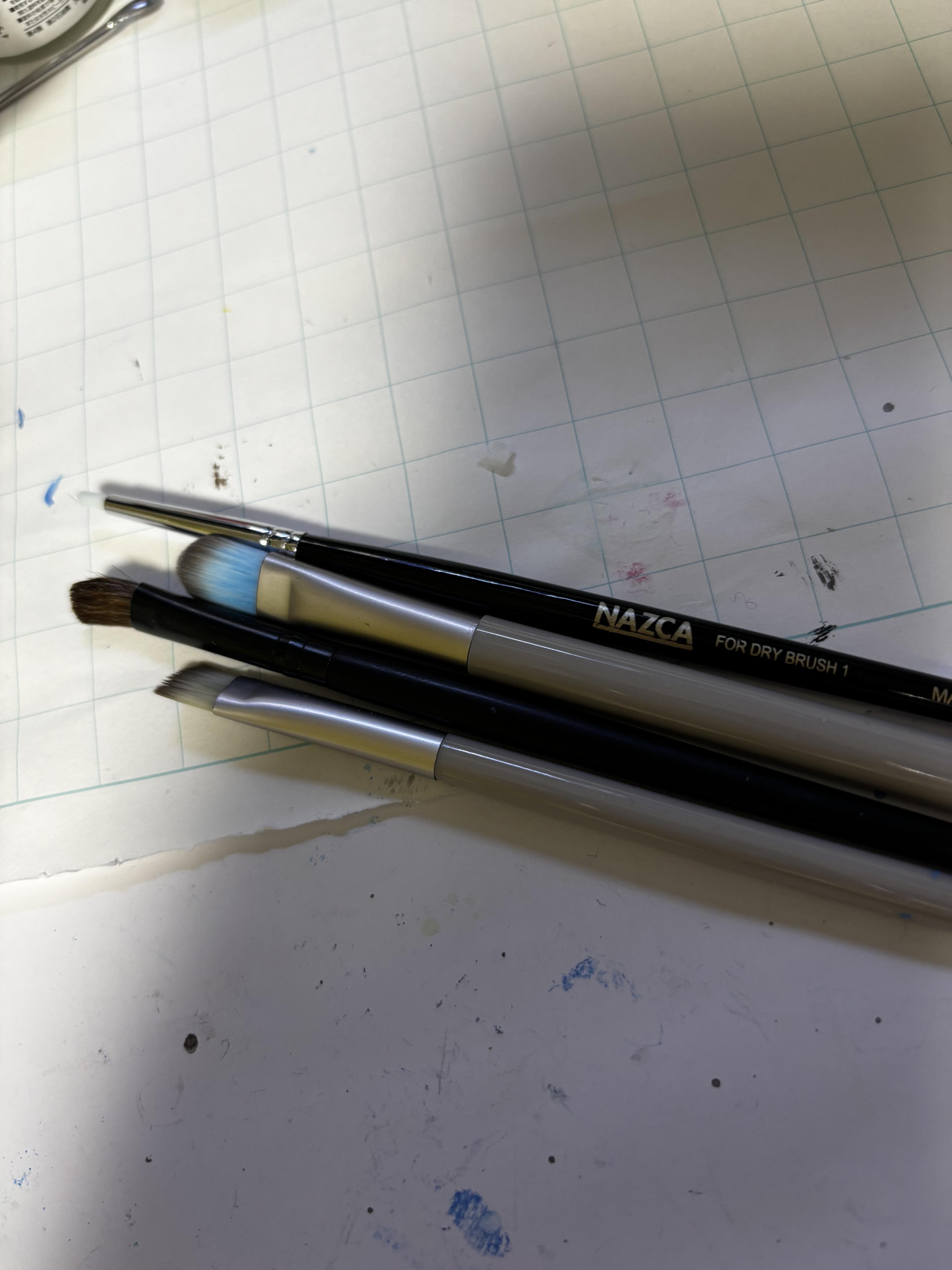 メインで使ったのは上から2番目の青い塗料が染み付いたやつと1番上のドラブラシ用