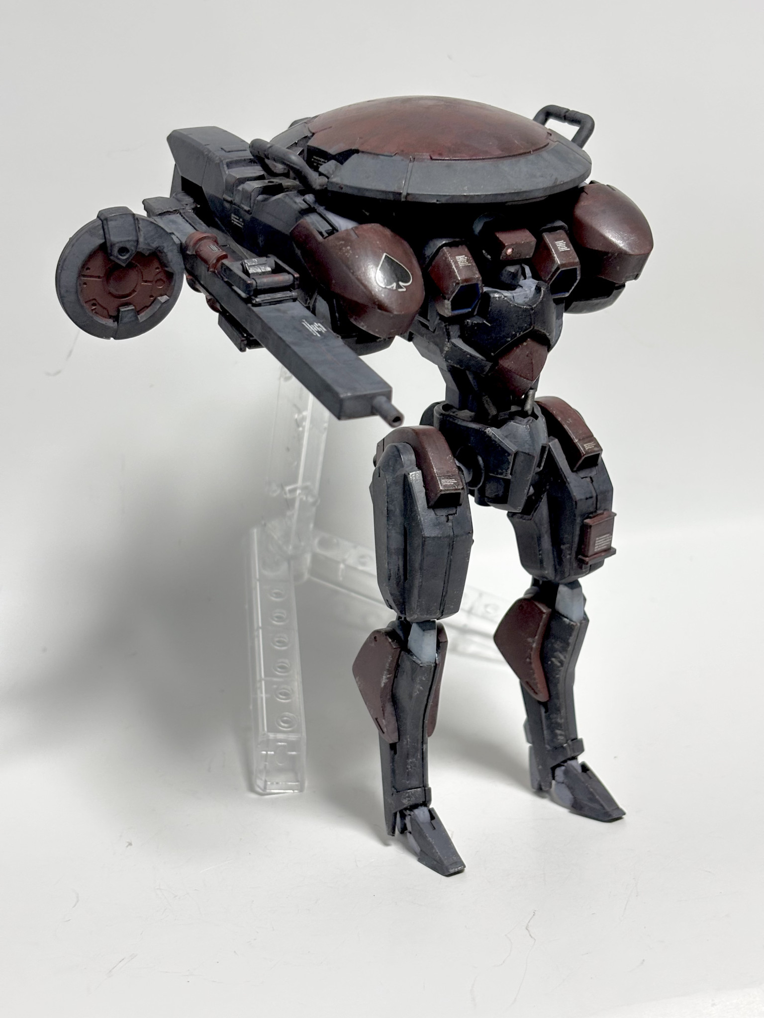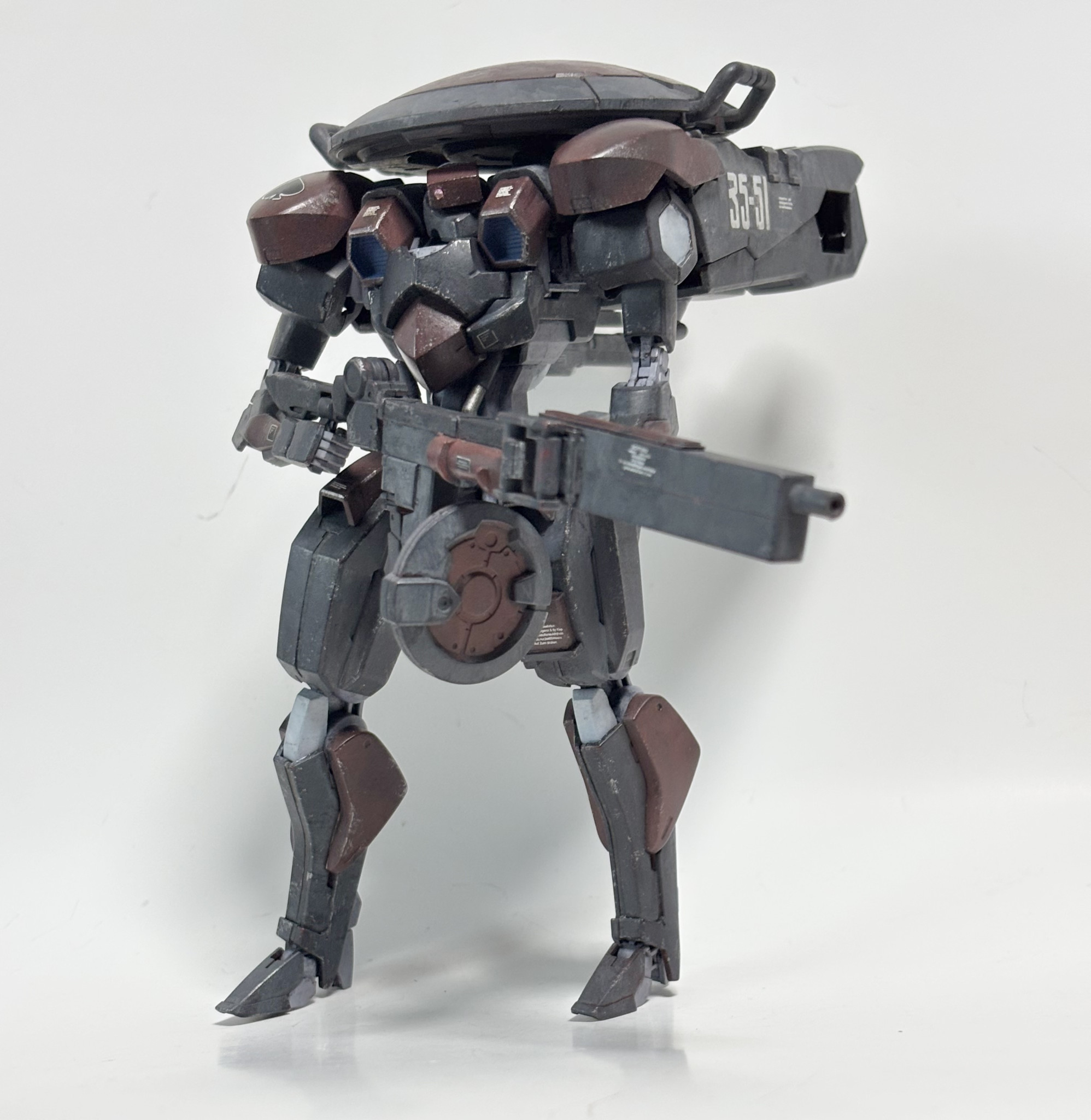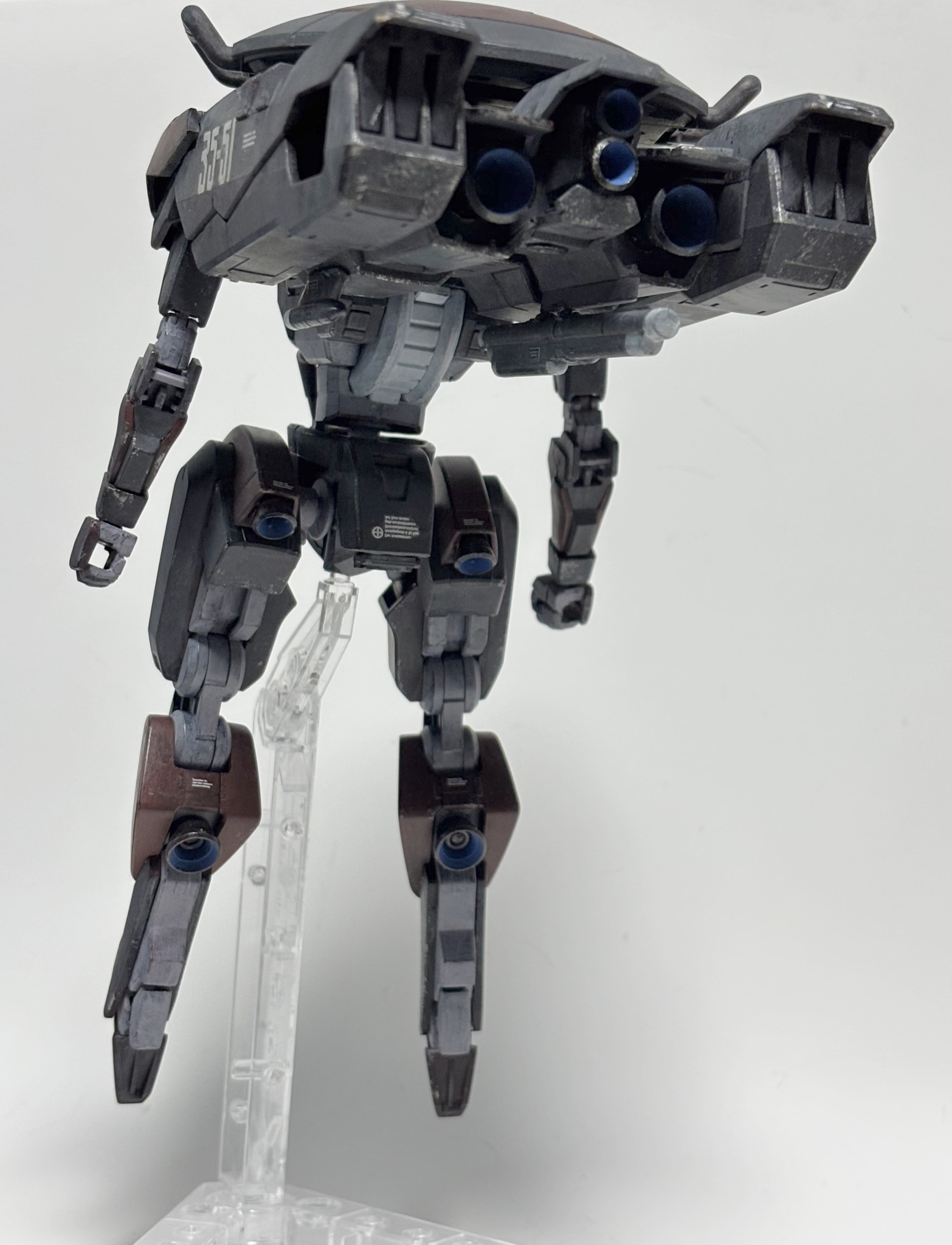 バックパックは偵察仕様だった名残りで、スケールモデルから流用したセンサーポッドや、小型化したスラスターを装着してます。