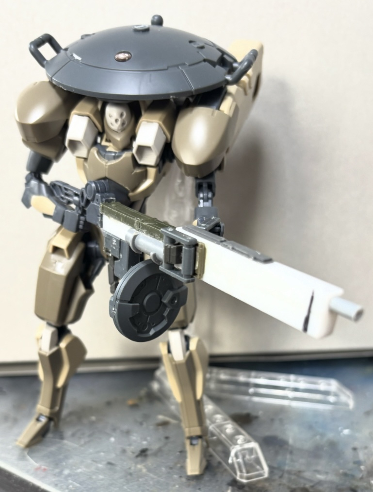 最初は偵察型にしようと思いましたが、改造を進めていくうちに文字通りの手持ち無沙汰を感じ、キット付属のライフルとジャンクパーツからレールガンを製作しました。