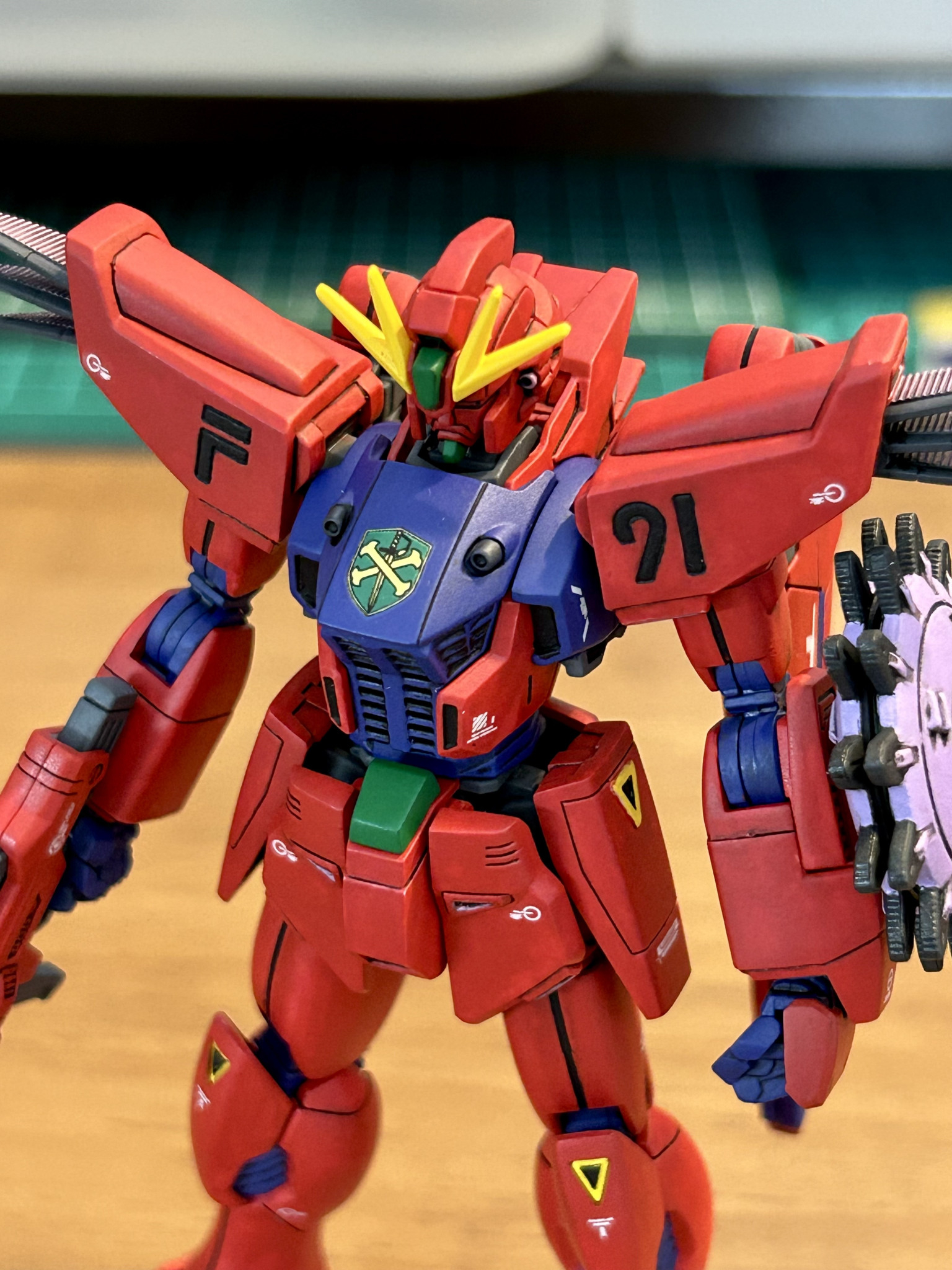 鹵獲機シリーズ第三弾はガンダムF91をビルドダイバーズに登場した鉄仮面機を参考に制作しました。カラーリングをアニメのものよりもラフレシアに近づけて調色しましたが良い感じになったかなと思います。