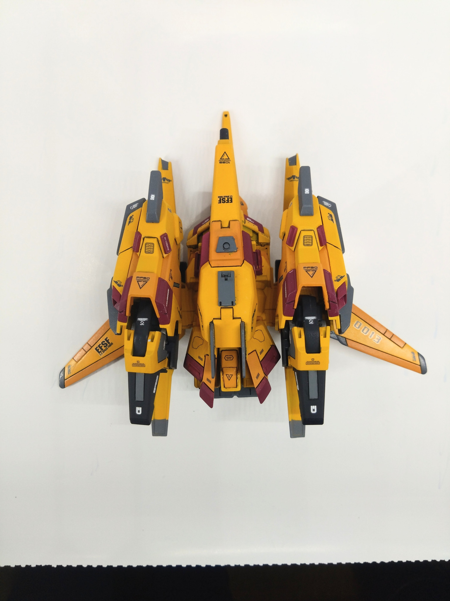 午年に因んでユニコーンシリーズを、と思ったらなかなか構想が固まらず⋯ようやく完成しましたリゼルC型。元はゼネラルレビル配備機ですがオリジナルカラーで。このイエローはメタスをオマージュしつつ変形機ならではの理由で。