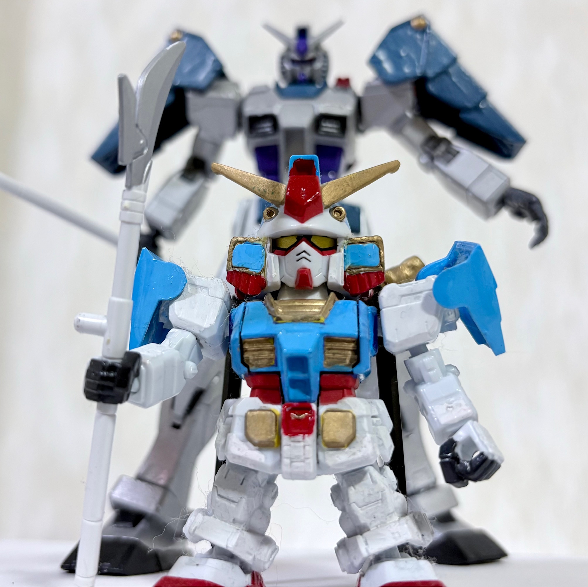 元ネタ。これは過去にマイクロウォーズのガンダムを改造した「武者影頑駄無」。リアルタイプでやるとどうなるかをシミュレートして作った。