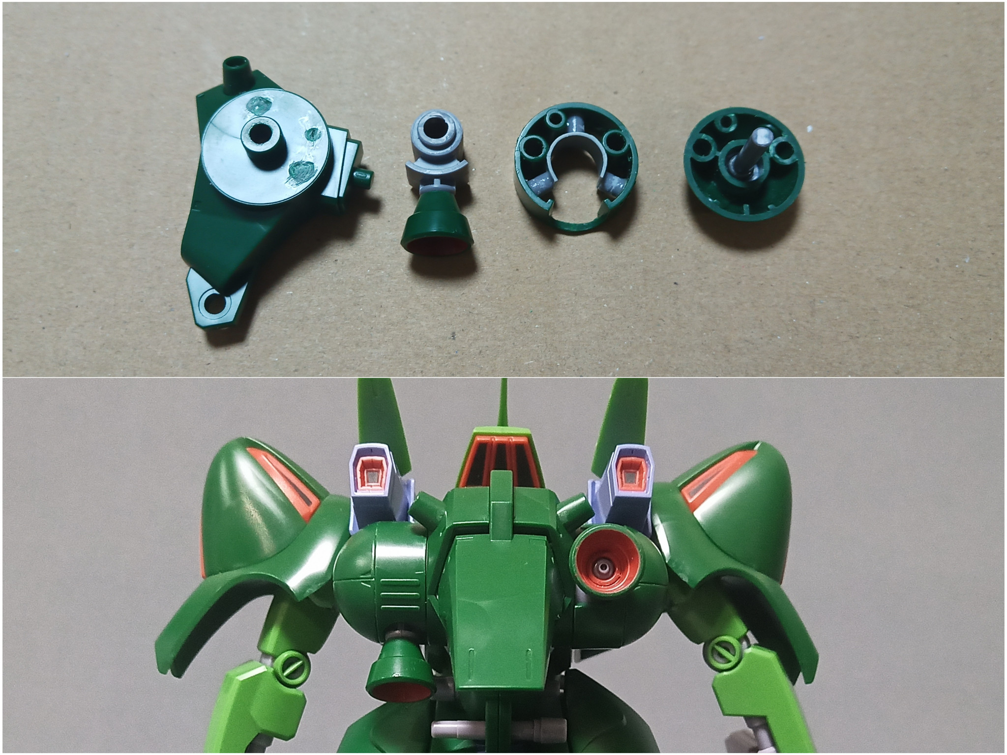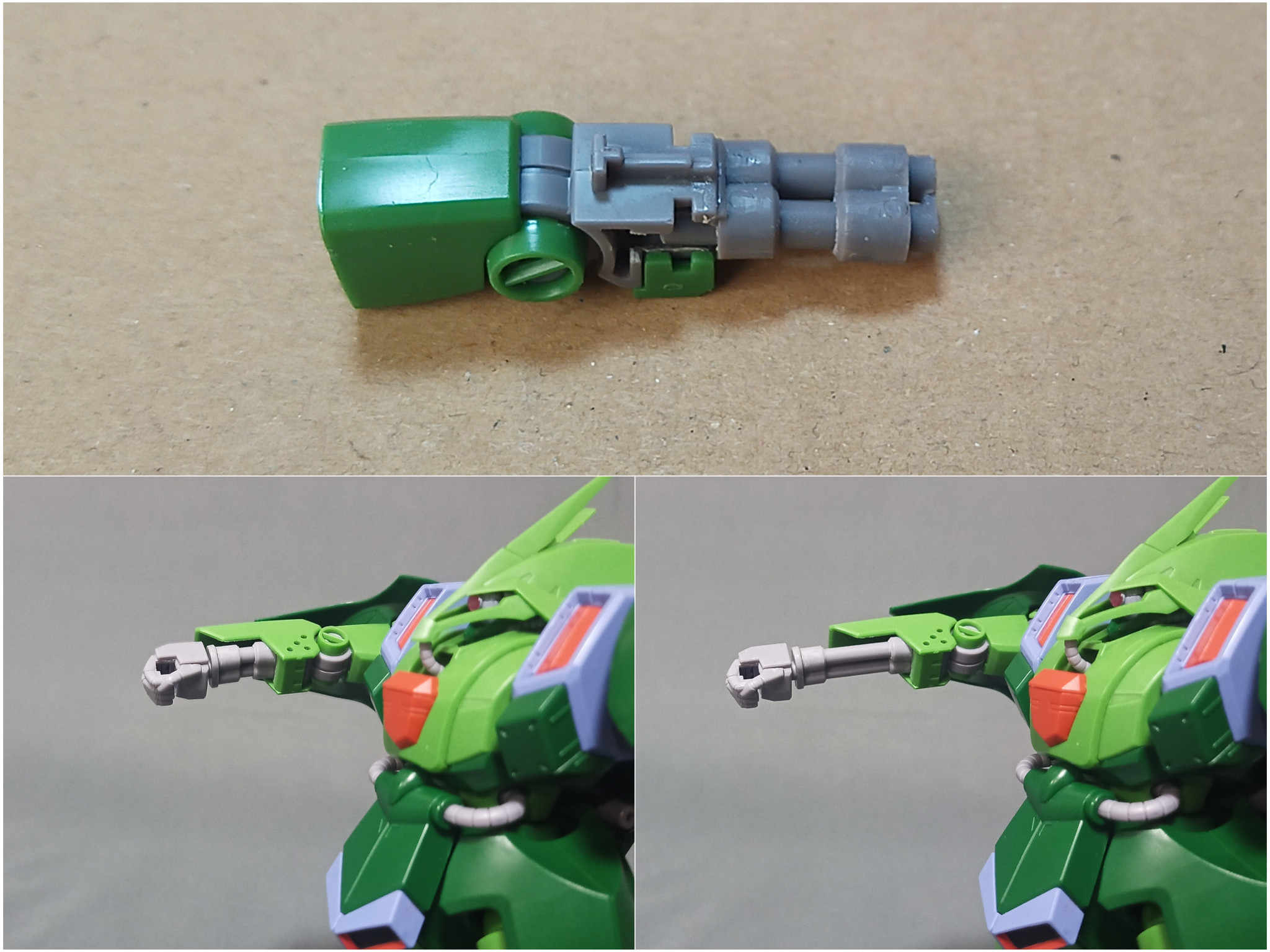 というのもUP主はどちらかと言うと「固定モデルより可動モデル派」「プロポーションよりギミック重視派」なので、例えば「ズサのブースター接続部のフタ」とか「ドライセンのガトリング展開」みたいな、旧キットでは再現されてたギミックがHGUCでオミットとか差し替えとかになってたりすると「HGだよ?ハイなグレードだよ?ハイじゃないグレードでできてた事ができなくなってちゃダメでしょ」という悶々とした感じの箇所がこのキットにもあったからなのでした⁽⁽꜀(:3꜂ ꜆)꜄⁾⁾