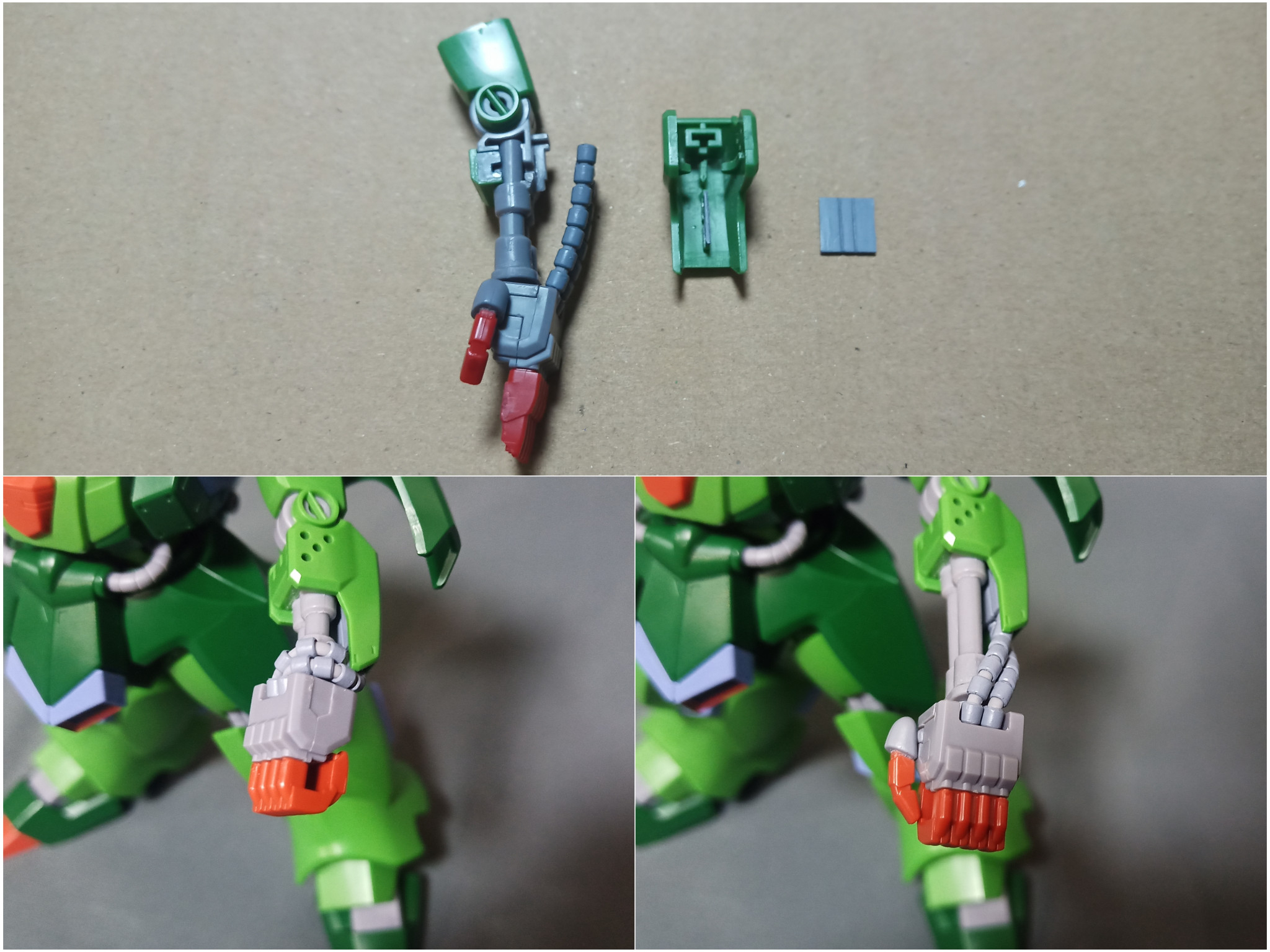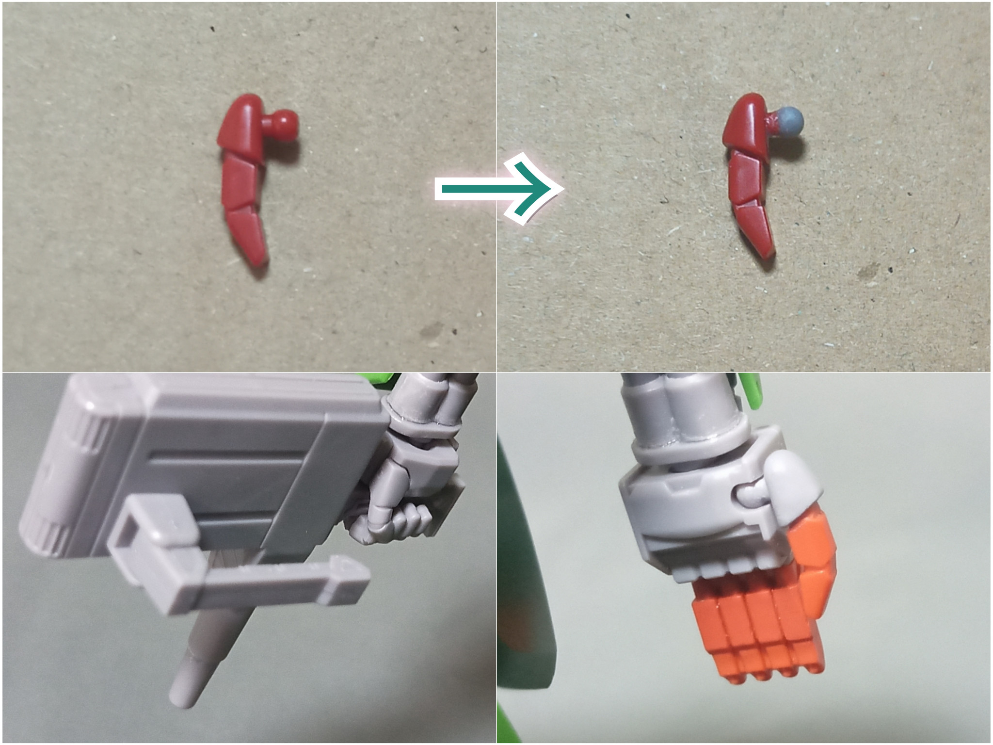 その他については動かしてるうちに塗装が剥がれて萎えそうな親指付け根のボール部分をグレーのランナーから球状の形に削ったものに置き換えて対策したり、手や武器の目立つ肉抜きをパテとかランナーを加工したもので埋めたぐらいです