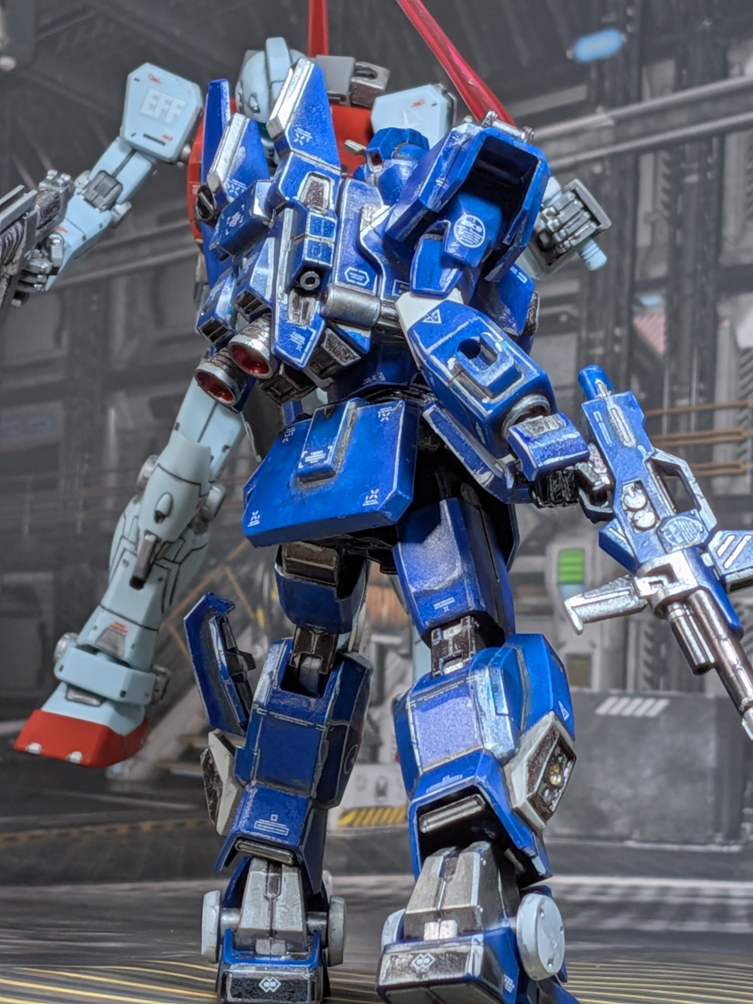 ニムバスカラーにしようかと思いましたが、せっかく肩が青いままなので連邦製のままにしておきました
