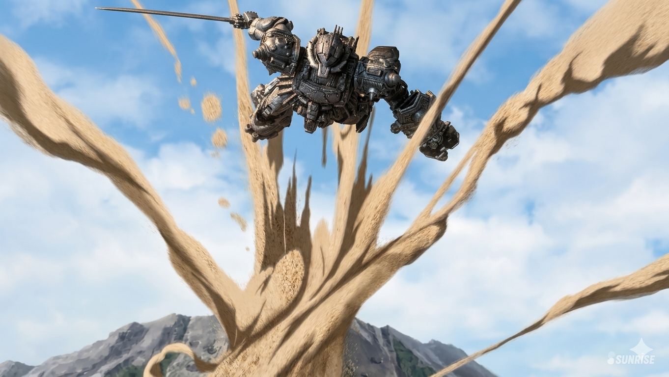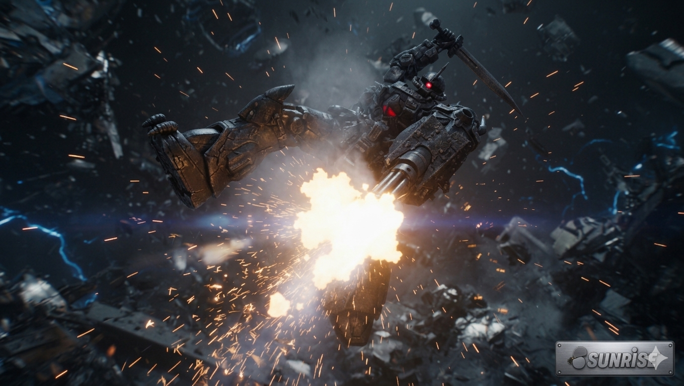 青ジークアクスと黄ジフレドの闘い