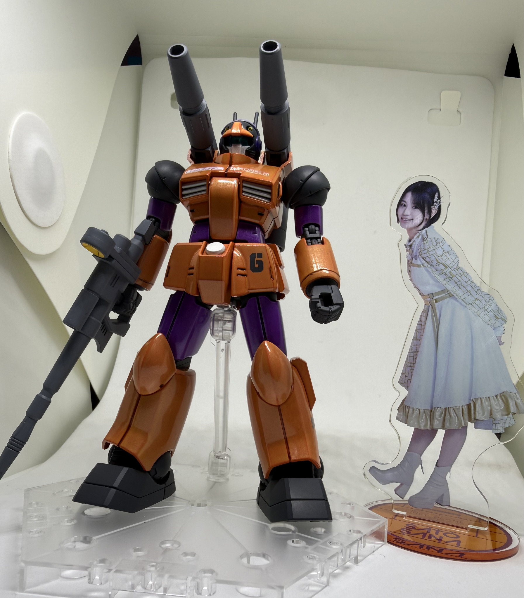 全機体の右脚にあるマーキングは、曲の歌詞にもある「BHC(BANDAI HOBBY CENTER)」を使用しました。