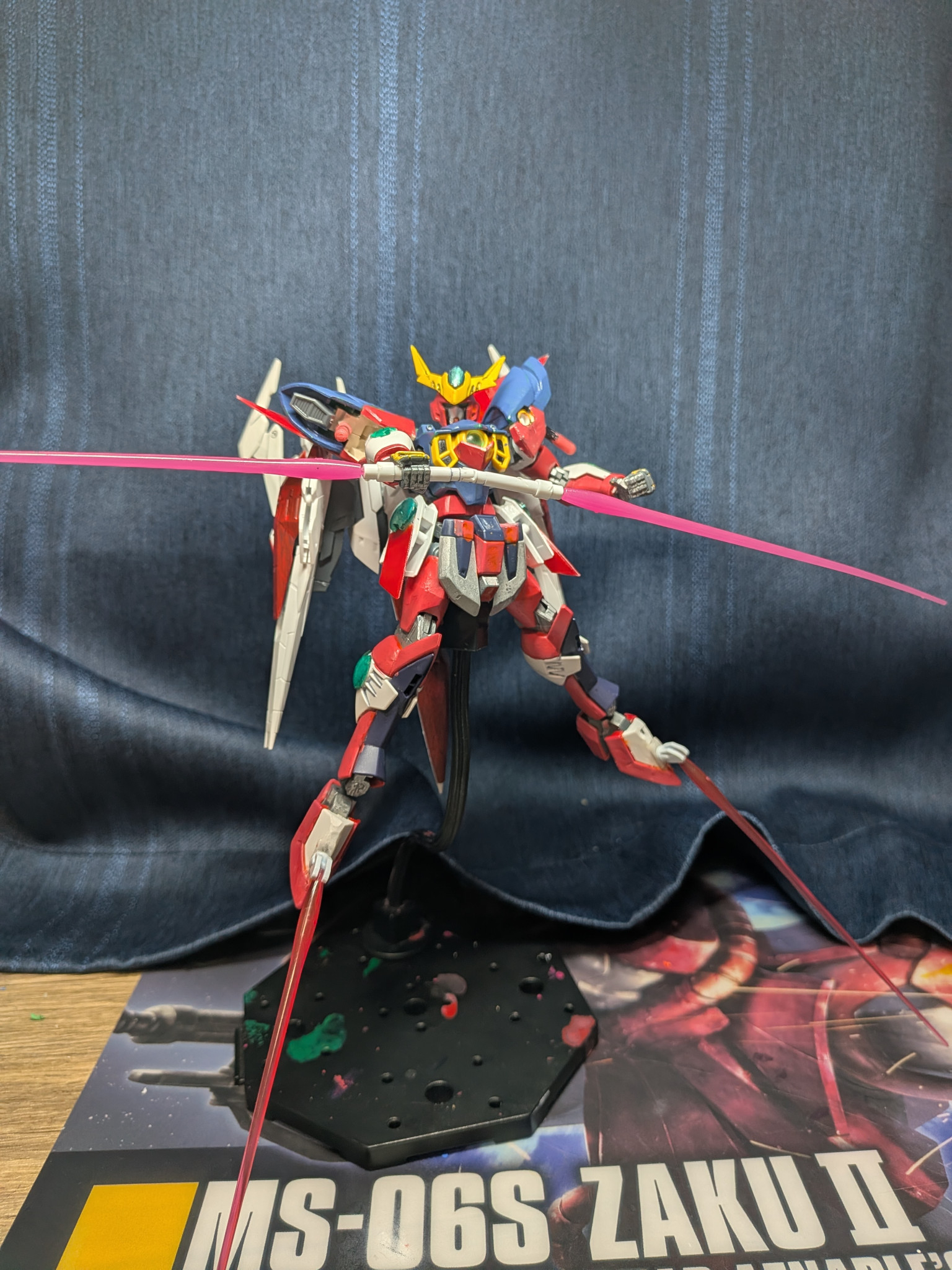 スタンドがなんか汚くなってますが気にしないでください、しっかり落とします!そしてこのポージングはダブルオーライザー初登場のところです!あのシーンはめっちゃかっこよかった!