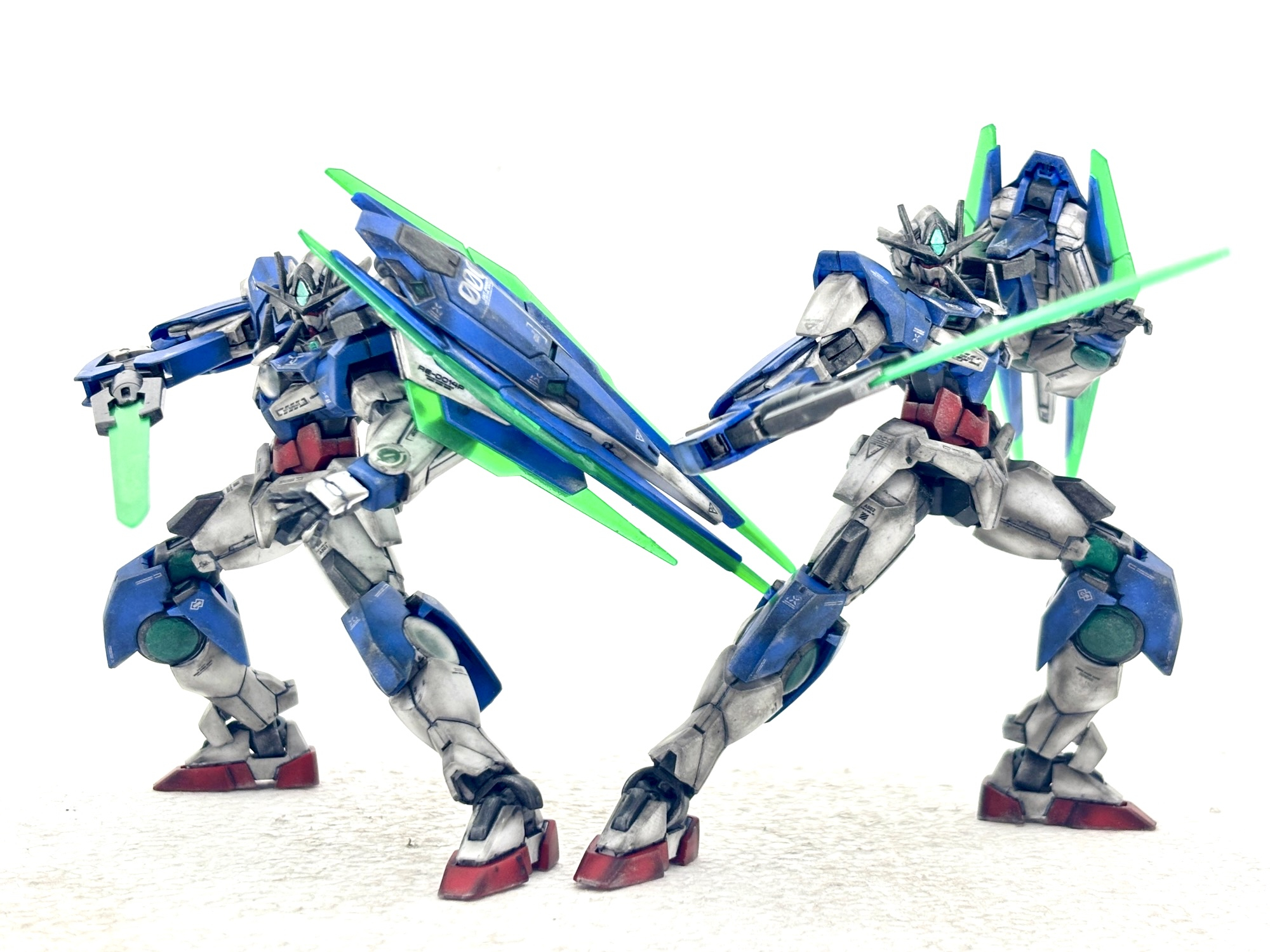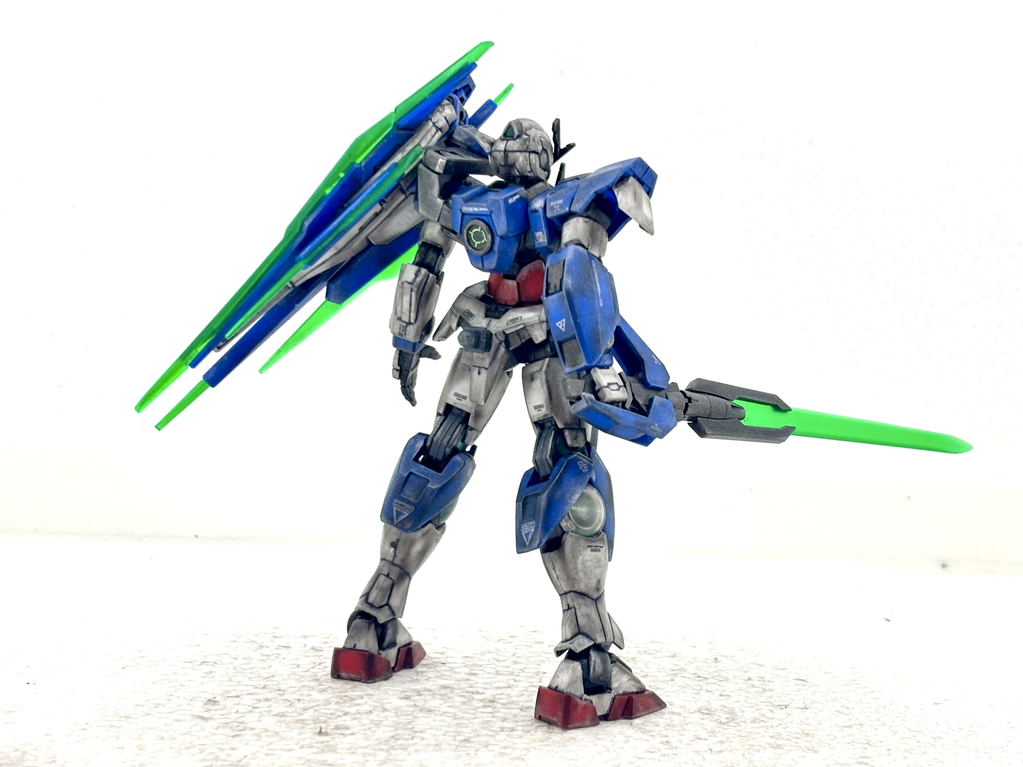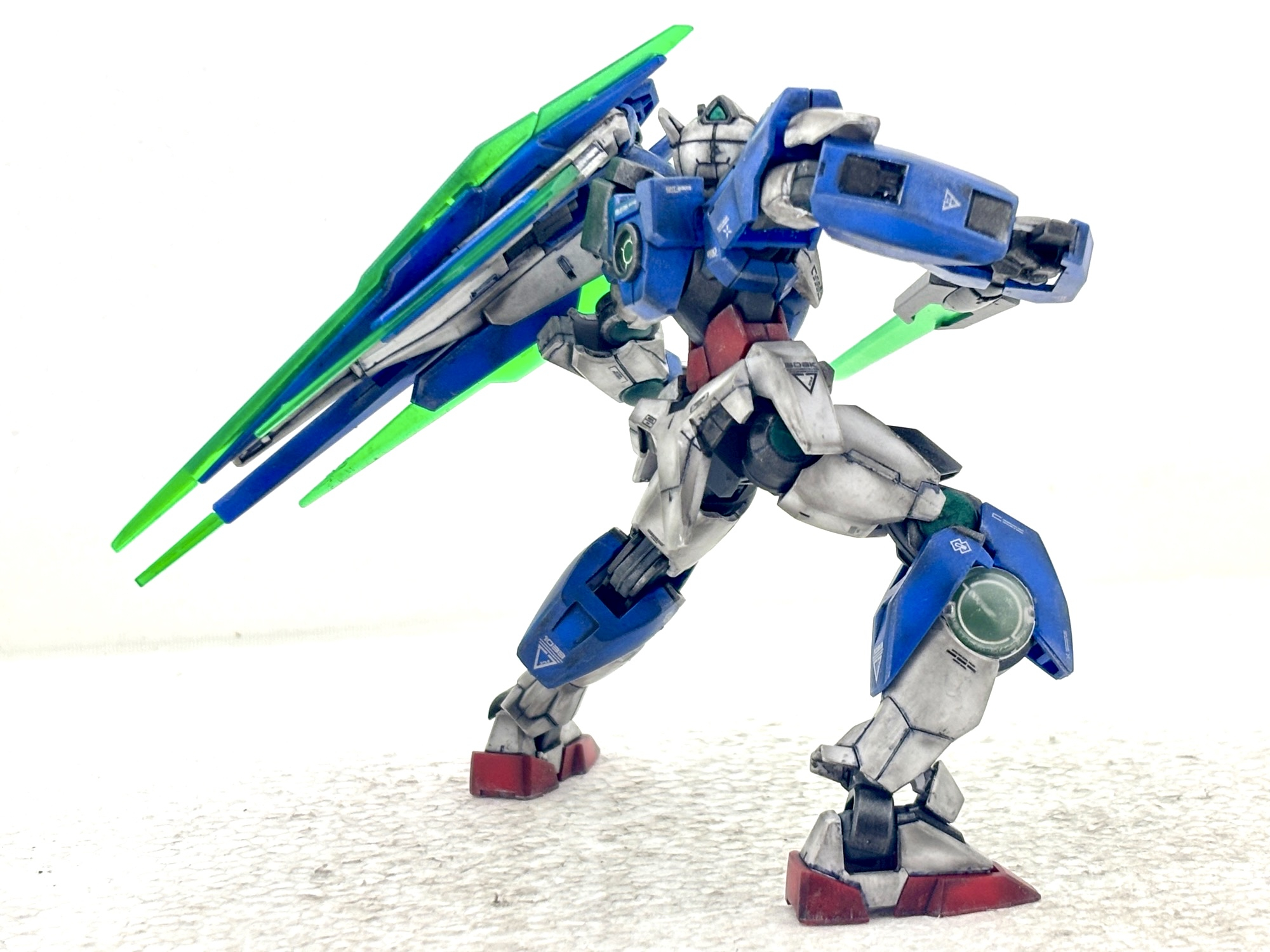 前回のGNアームズ製作で気付きました。やっぱりクアンタを作りたい‼️RGではフルセイバーも含めて3体作りましたが、HGはまだ手を出してなかったので早速ネットでポチッと。それにしても安く手に入りやすい素晴らしいキットです。筆塗り部分塗装、墨入れ、デカール、つや消しトップコート、汚しの仕上げです。