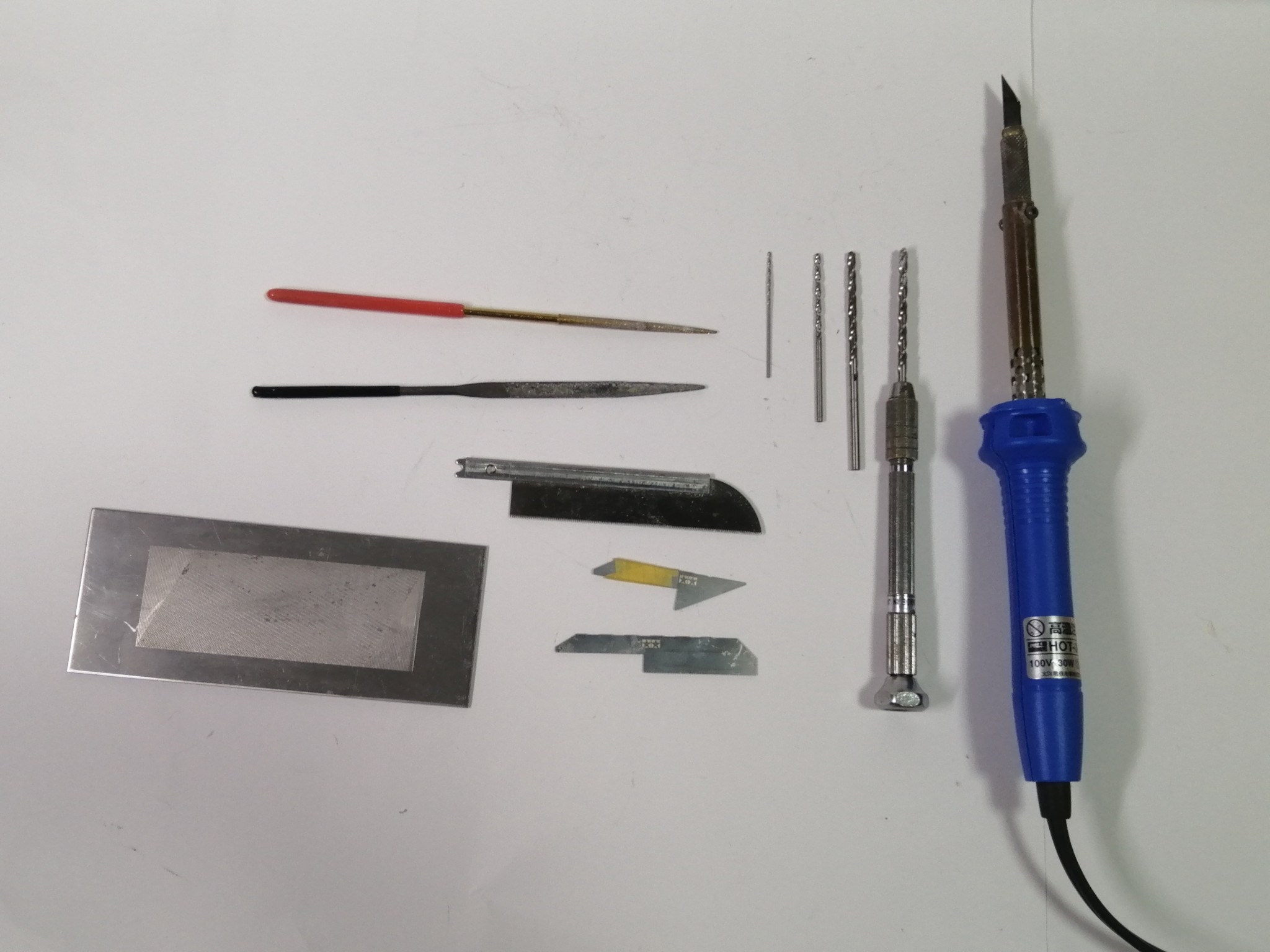 ピンバイス ご存知ピンバイス。1~3mmのものをよく使います。幅広く持っておくと便利でしょう。