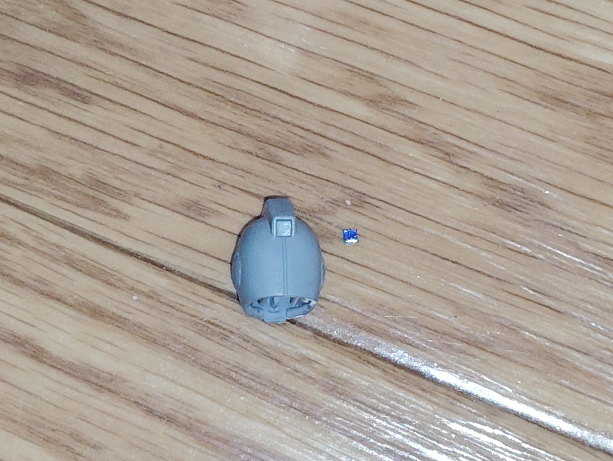 しかしながら、手持ちの一般発売のジムのバイザーがひとつしかなく、自作であの絶妙な青緑色を再現するのは無理だと判断したため、今回はクリアーブルーで塗装することにしました。