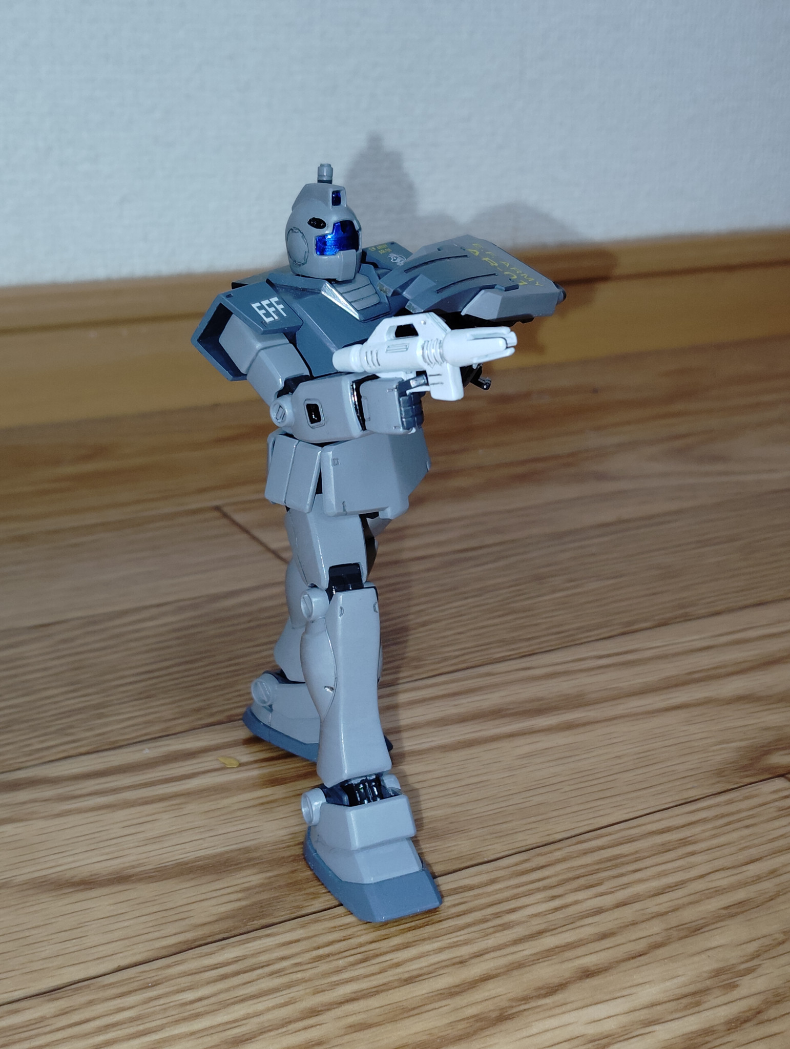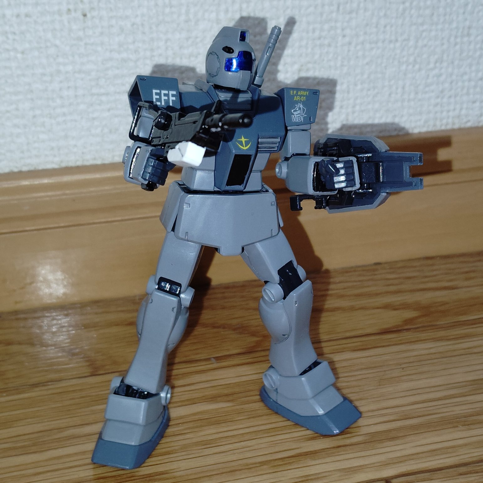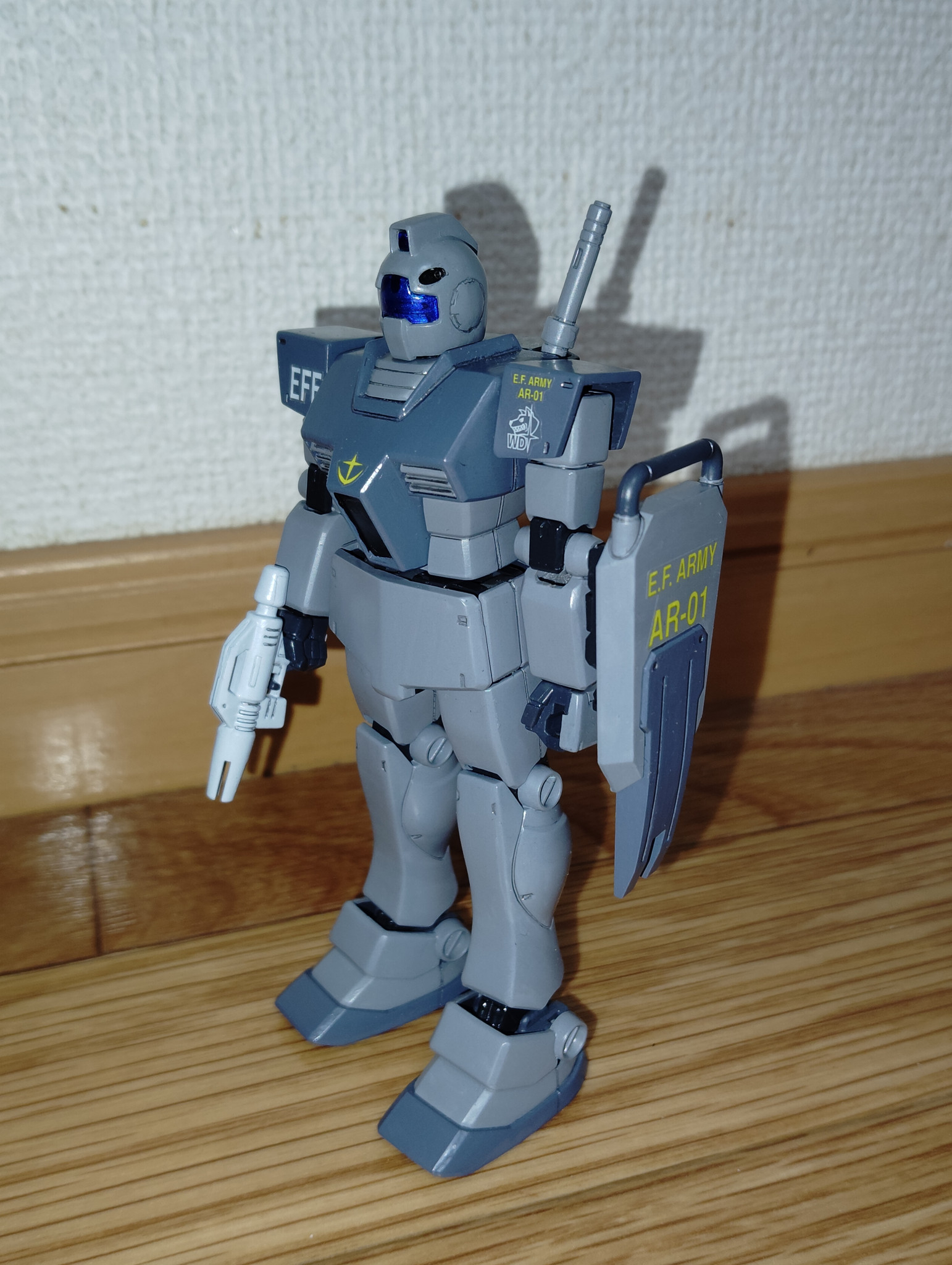 本体は全く無改造のノーマルなジムですが、武装とカラーリング変更でかなり印象が変わりますね。