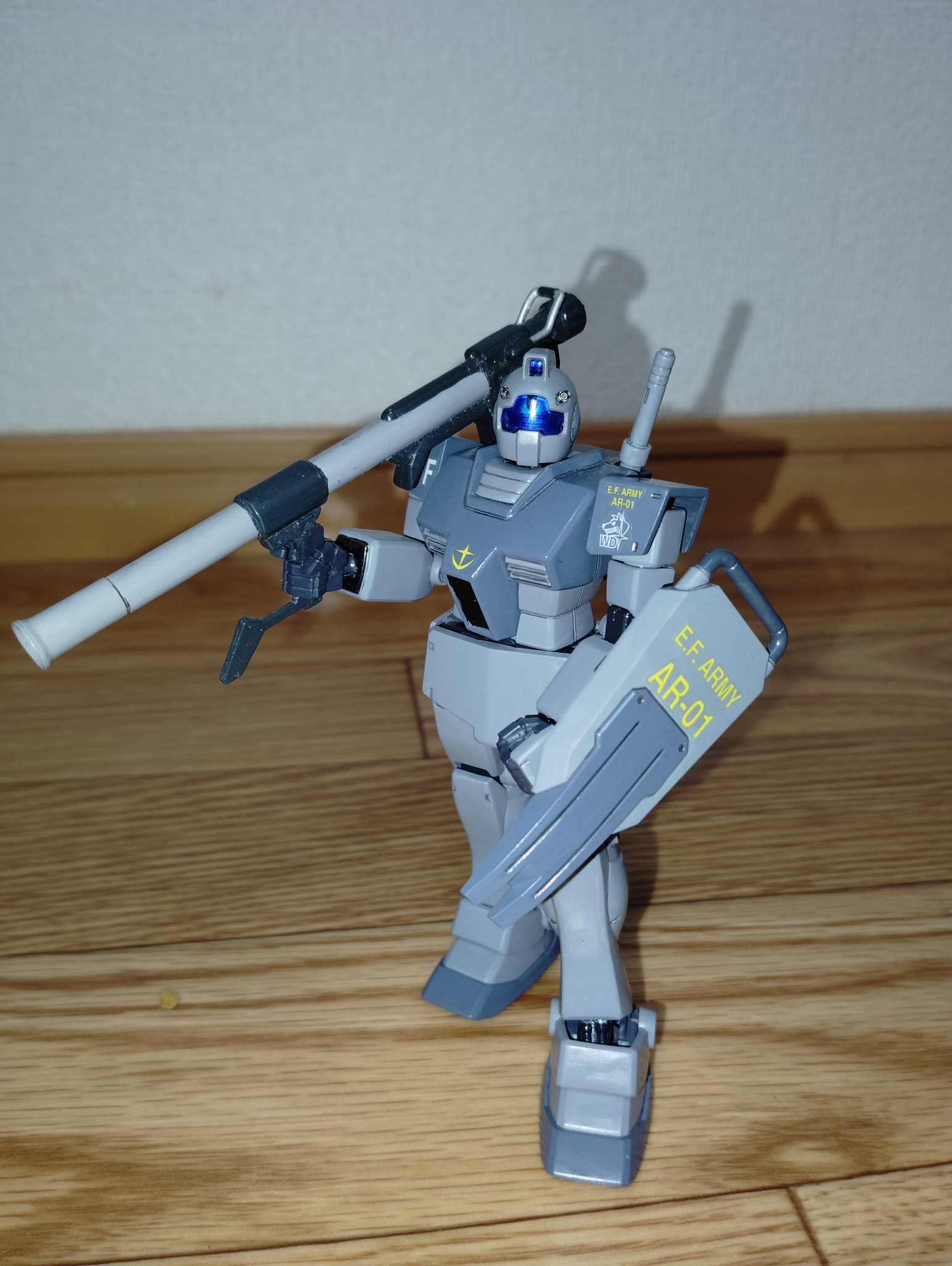 初めて正式な量産タイプのジムにロケットランチャーを装備させてみましたが、思った以上に似合いますね。