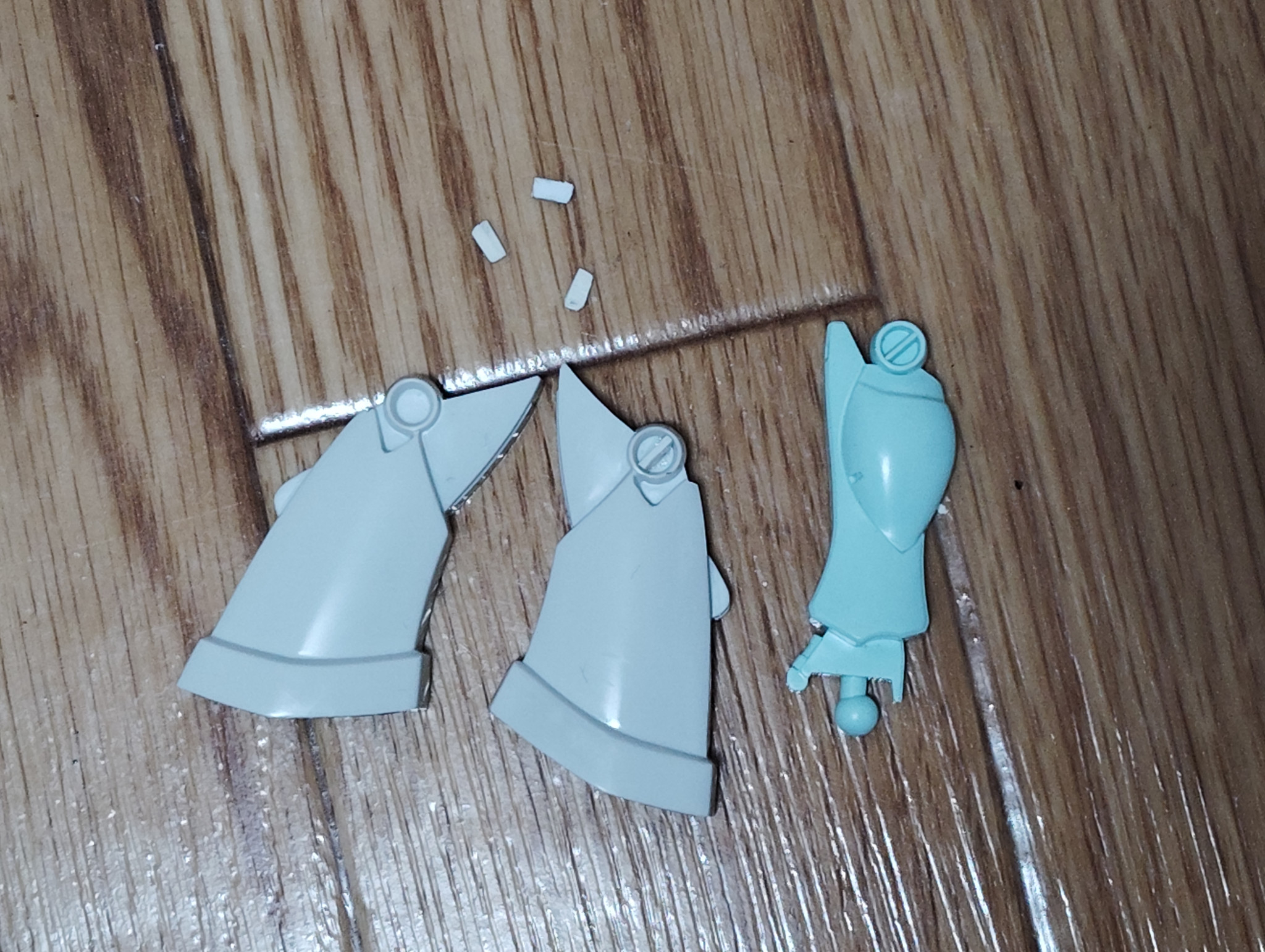 前回製作したジムキャノンでは特に加工はしなかったのですが、先ほど言及したとおりそのまま組み立ててしまうとキャノン砲の可動範囲が著しく限定されてしまい、水平より少々高い程度までしか仰角が取れません。