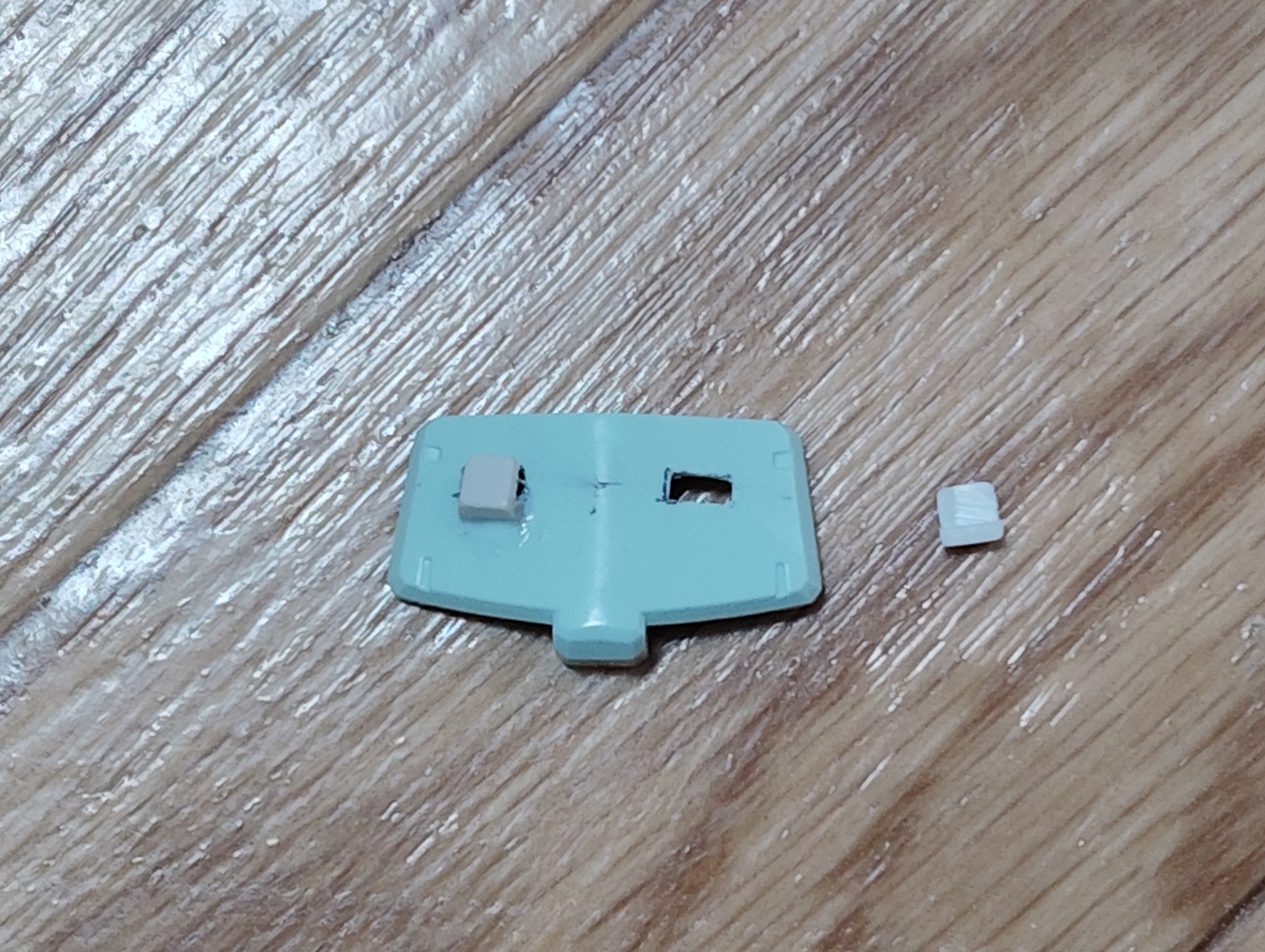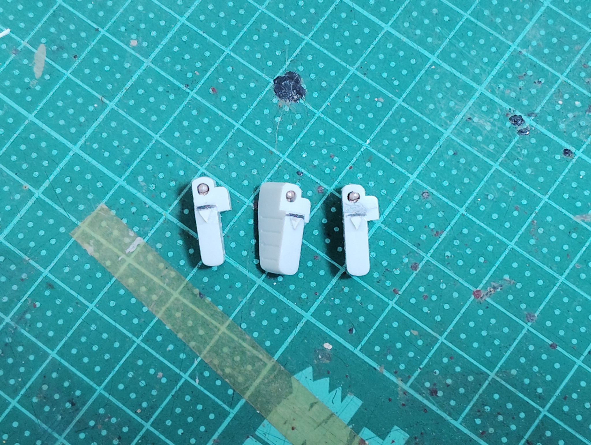 後部に逆三角形のディテールがあるのですが、合わせ目消しをする際にどうしても削れてしまうので、0,3mmのプラ板で新造しました。