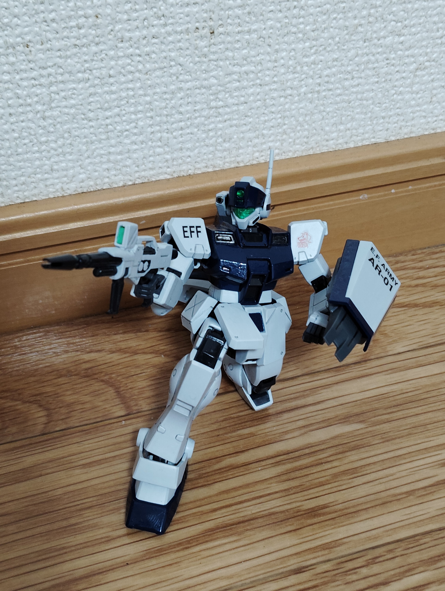 実はコチラの武装、グリップが太くジム・スナイパーIIの手首では持てなかったので、この写真のみ前々回投稿したジム(WD隊)の手首を使用しています。