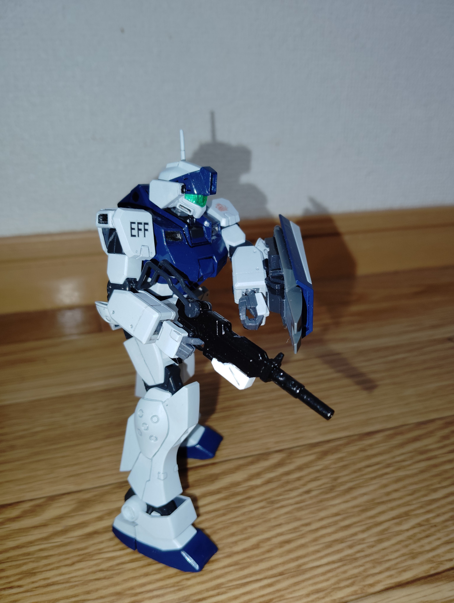 基本塗装は、ツヤ消し白にミディアムブルーと若干のスカイブルーを混ぜた寒色系の白色、インディブルーにツヤ消し黒を混ぜた自作ネイビーブルー(以前投稿したズゴックを製作した際に調色した塗料をビンに残しておいたので、そのまま使用しました)です。