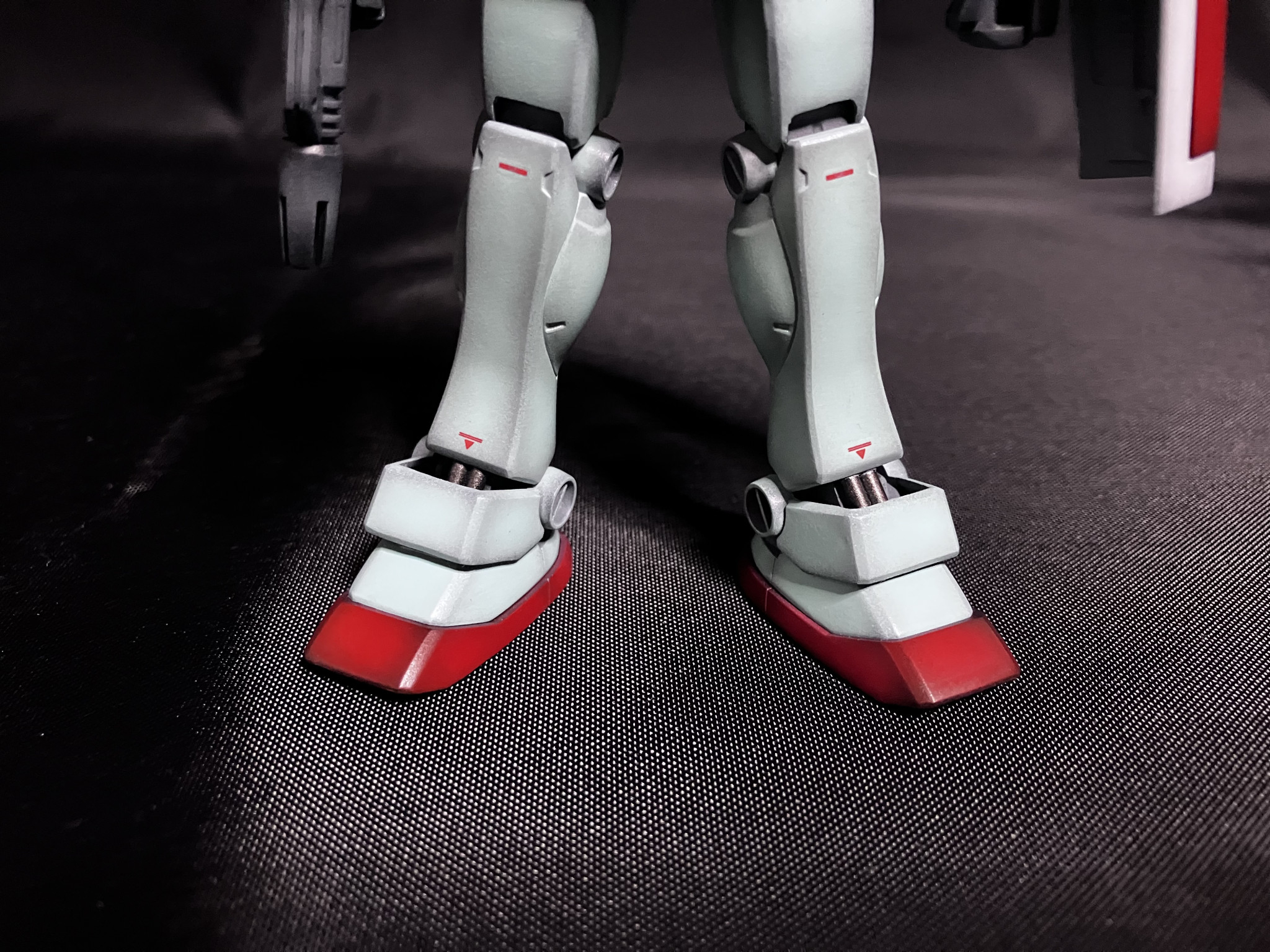 足首のシリンダー部分はデザインナイフで取り除き、2mmのプラ棒2本を接着して筆で塗り分けてます
