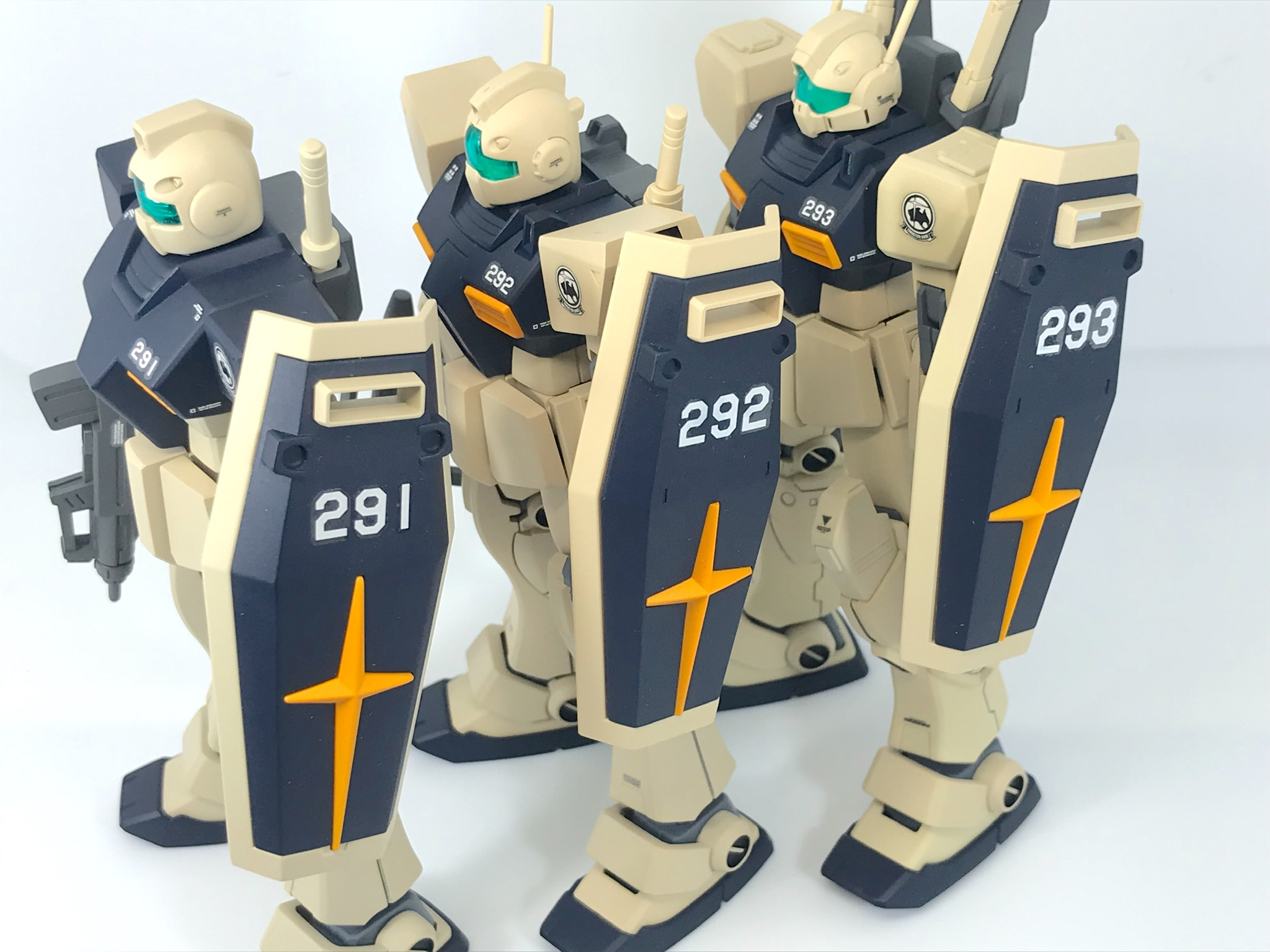 ジム、ジムⅡ、ジムⅢの並び写真です。これがやりたかったんですよね〜😀