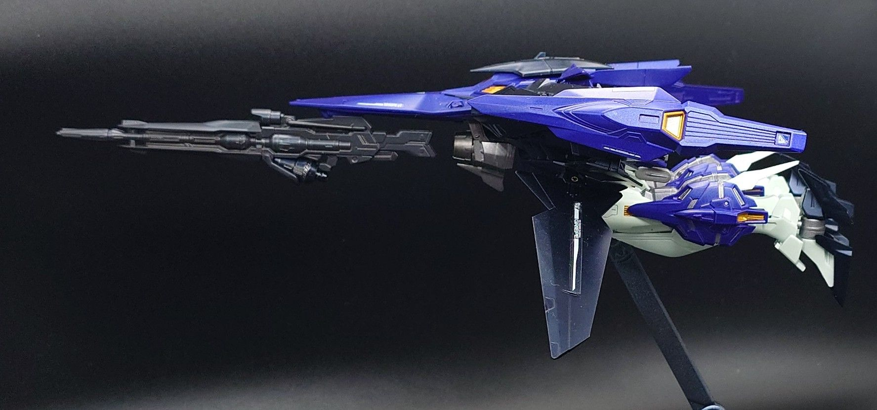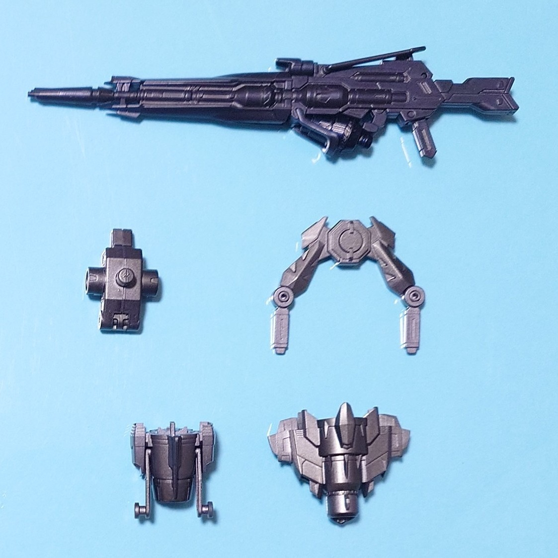 ライフル付けるとバスターメガ粒子砲を塞いでしまうのでアサルトモードと同様に天面でもいいかもしれません。宇宙空間だと空気抵抗も無いですし。