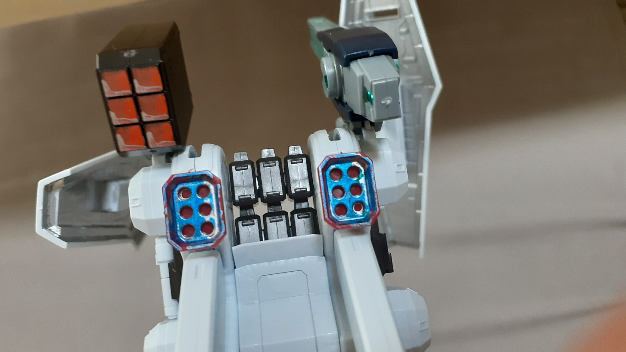 一部の武装を塗装しました。ただガンダムマーカーのガンダムメタリックマーカーセットしか持っていなかったので色は色々おかしいです