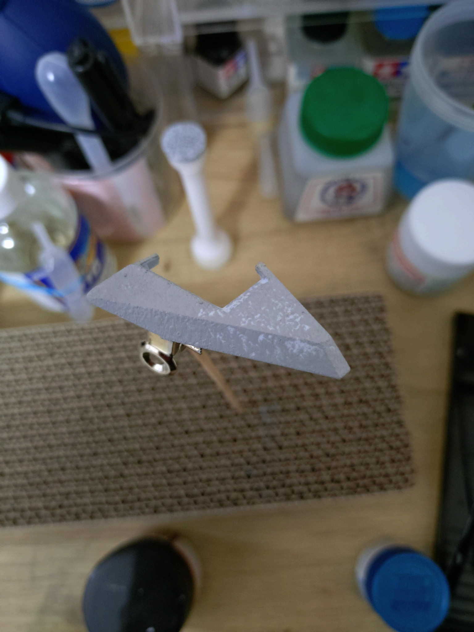 灰サーフェイサー500(1000じゃダメ)をスポンジで叩きながら荒い表面にするであります