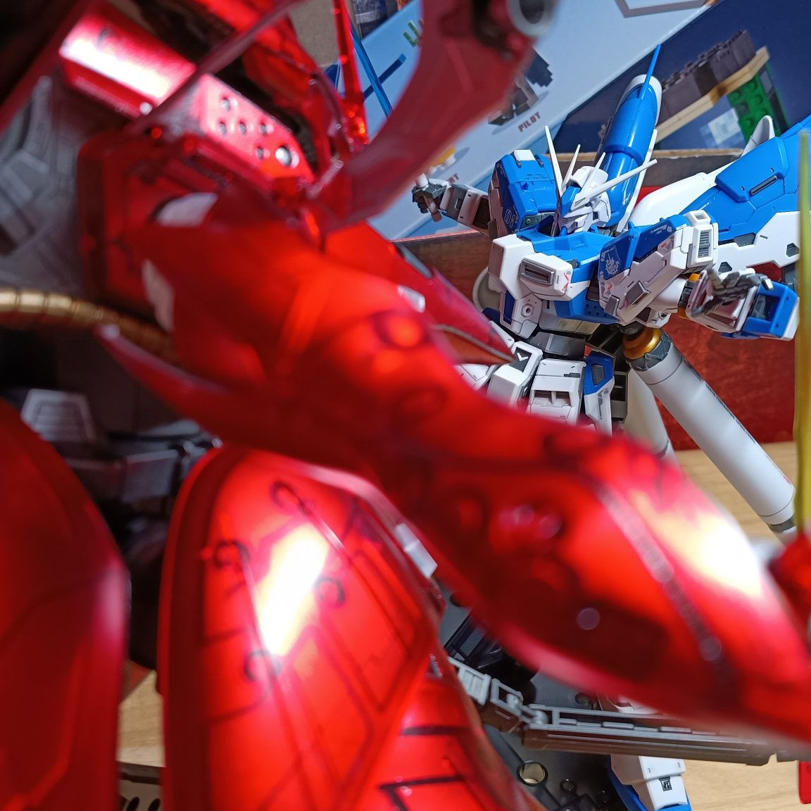 ハイニューはスミ入れとトップコートで製作し、ナイチンゲールはガンダムベース限定のクリアカラーを使って裏からシルバーを吹き、メカニカルコアメッキ風に仕上げました。