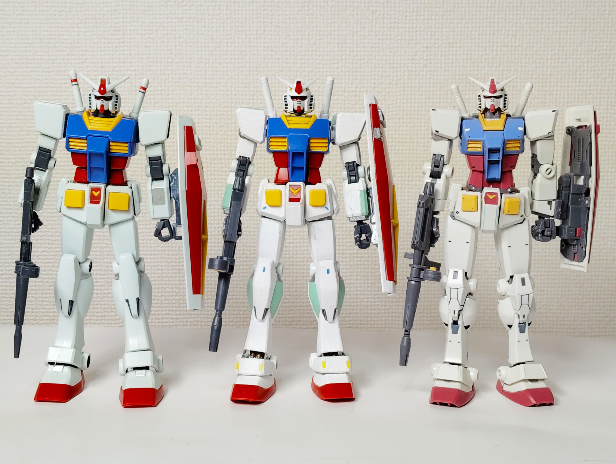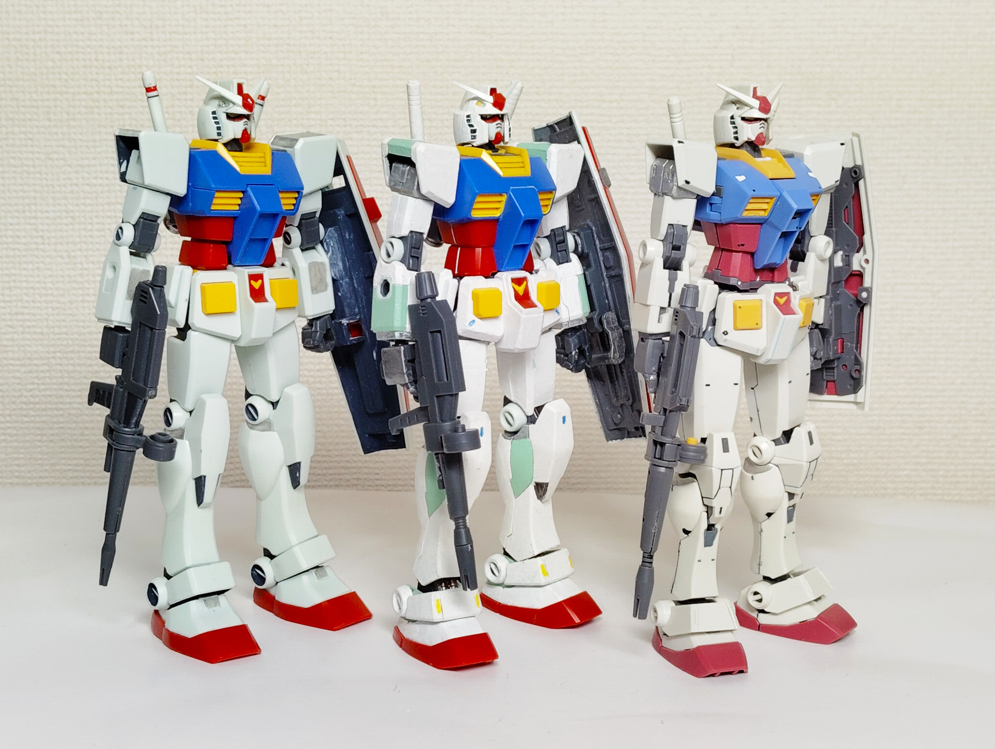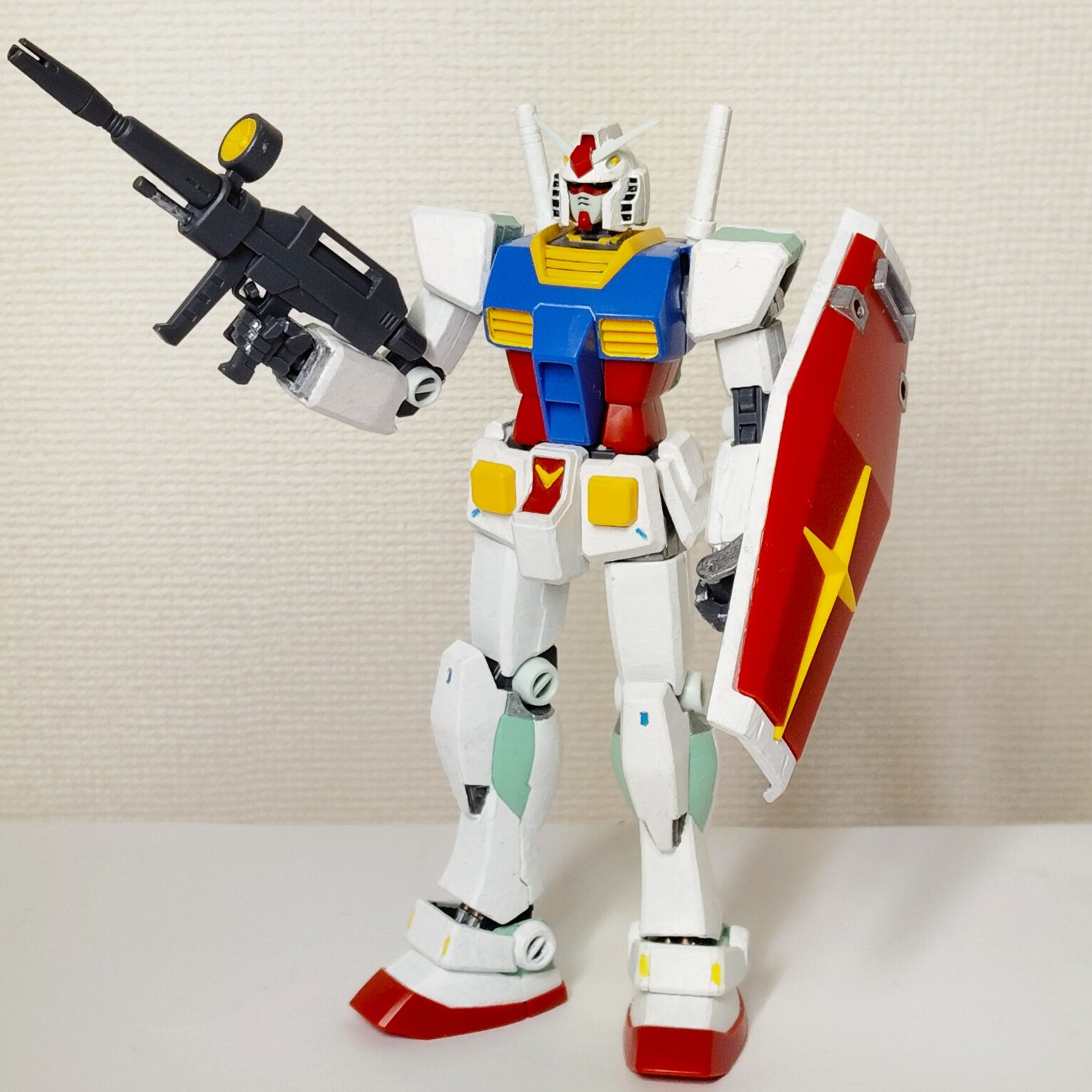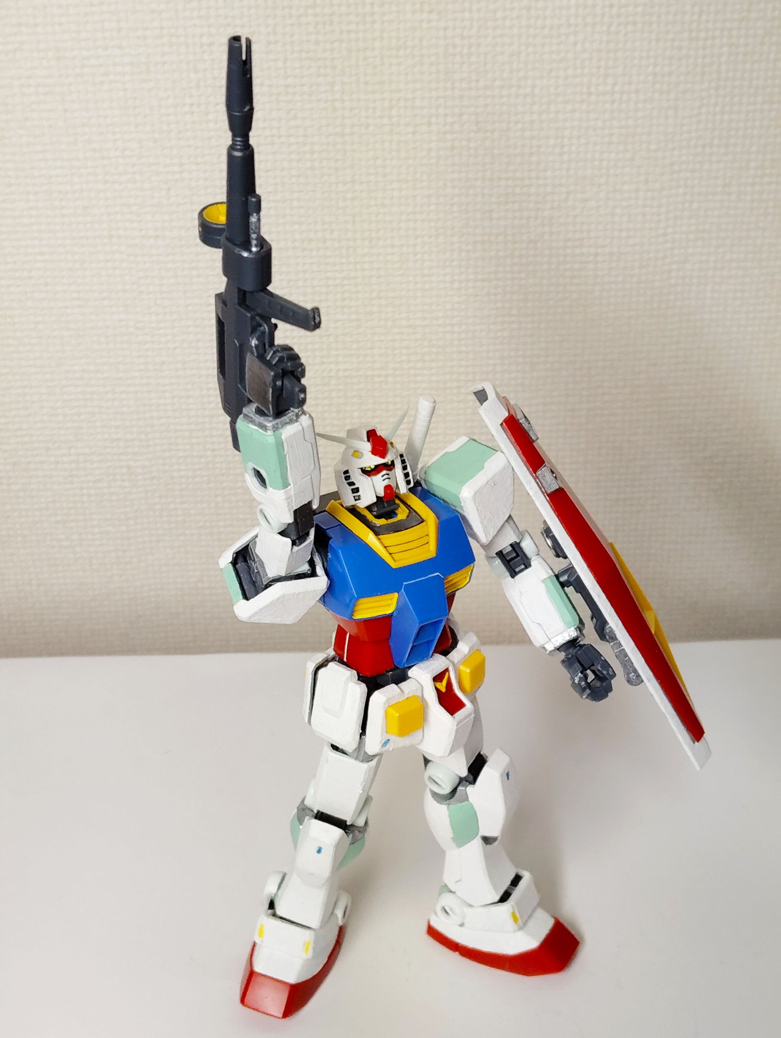 ガンダムHG、初代ガンダムのプラモよろしく薄緑がかった成形色。白く塗ってみた。