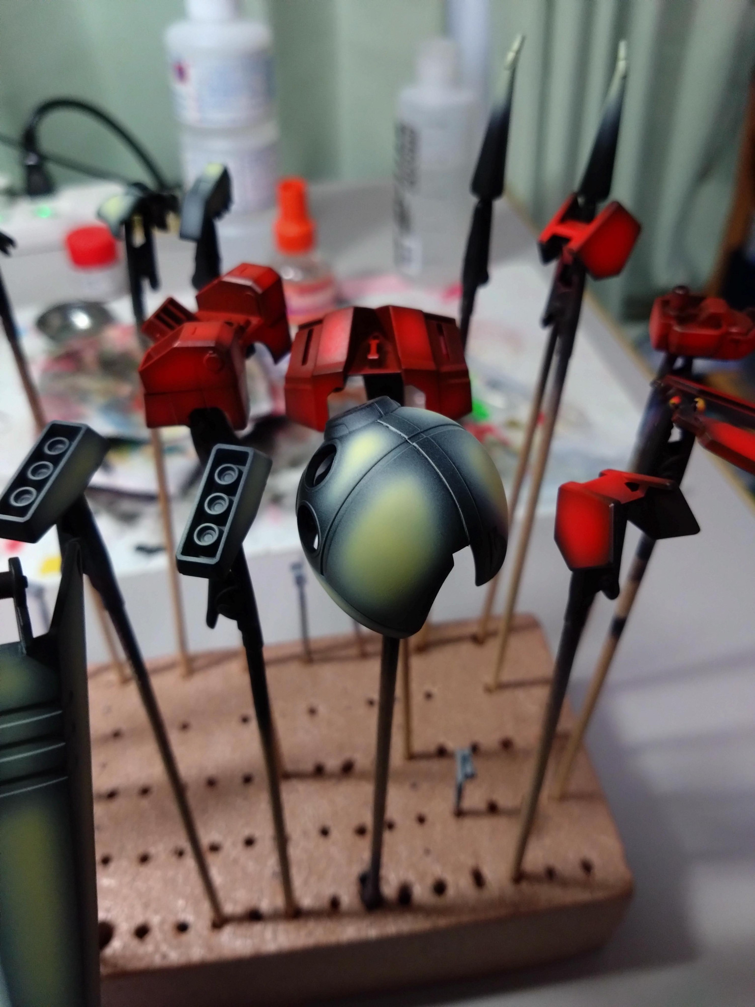 レッド系の発色のため、黒サフ→イエローサフで下地作りました。