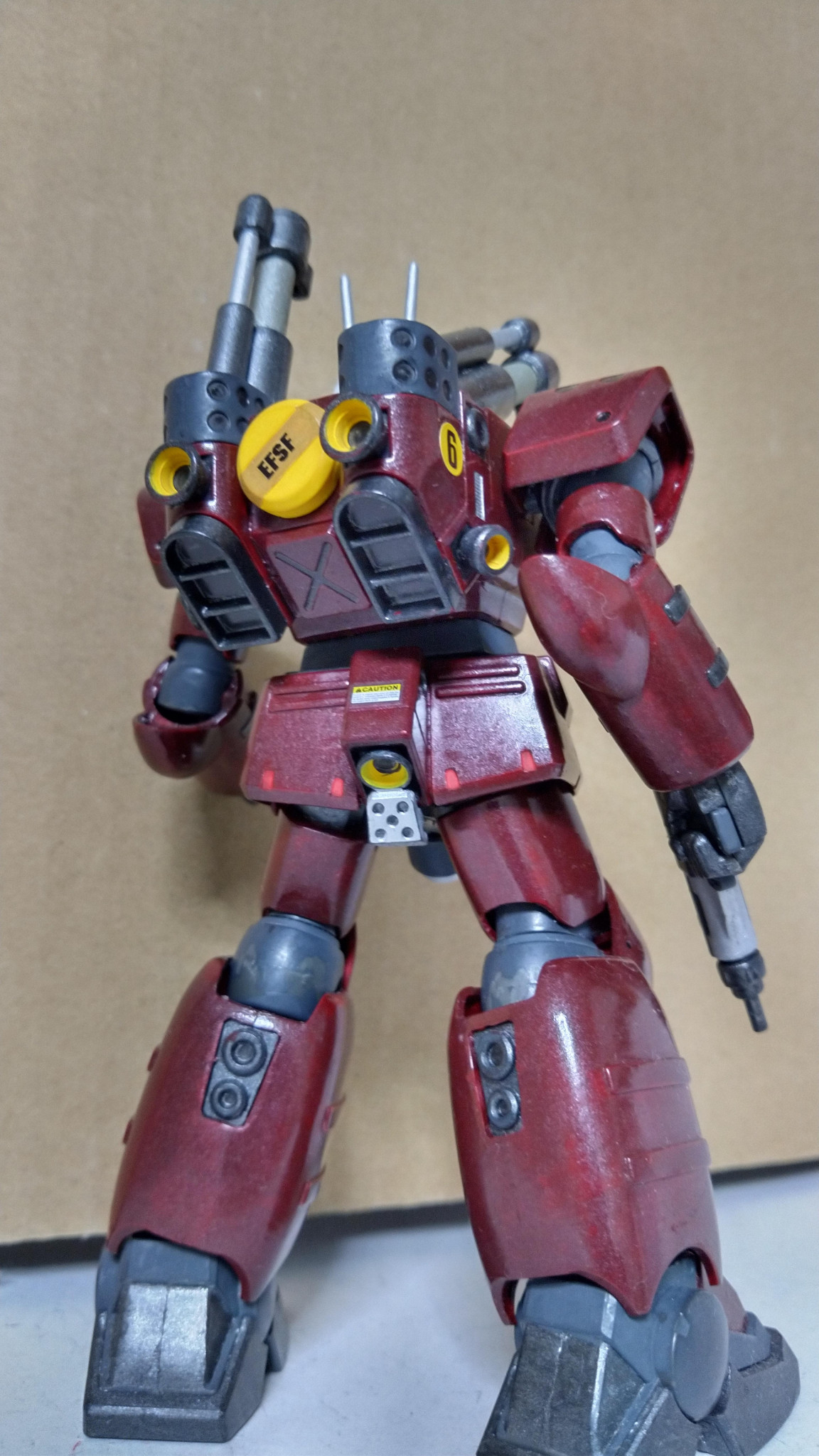 背部も何処かレイバー的。塗料はフラットレッドに若干ガンメタルを足してみました。最近はメタル系塗料が増えたので、苦心しなくなりましたね。