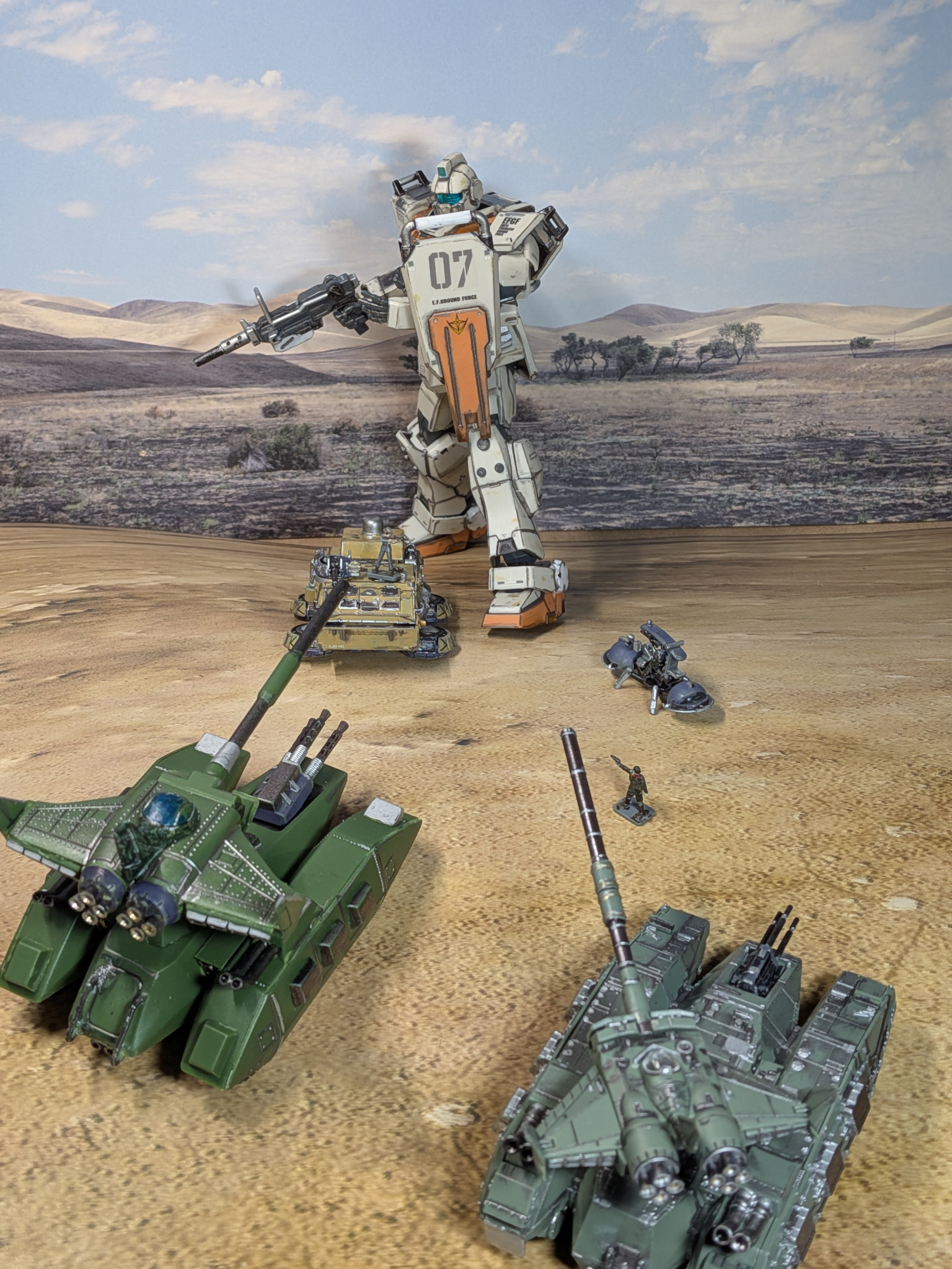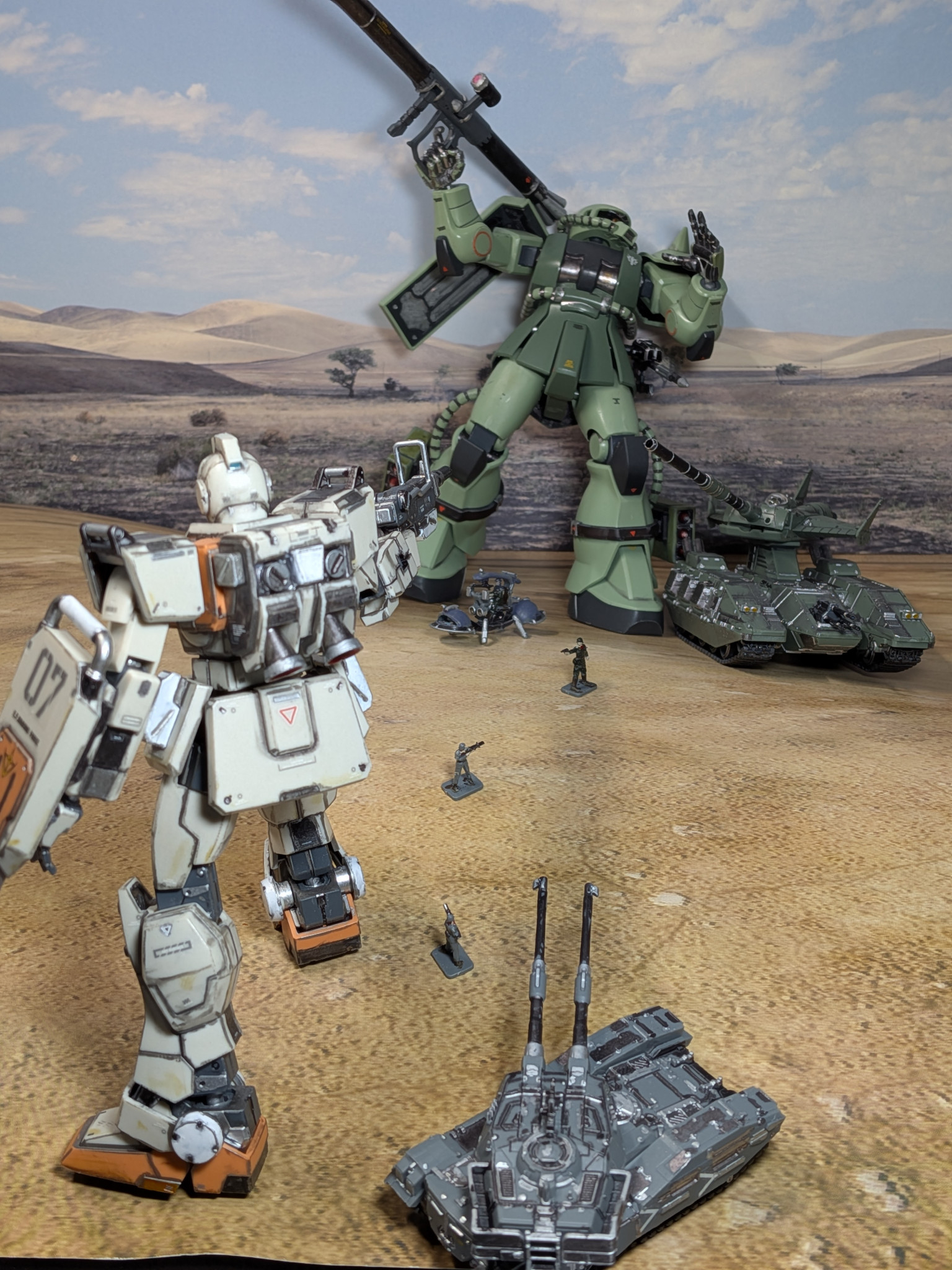 折角リアルっぽく仕上げたので、連邦軍の地上部隊を加えてブンドド