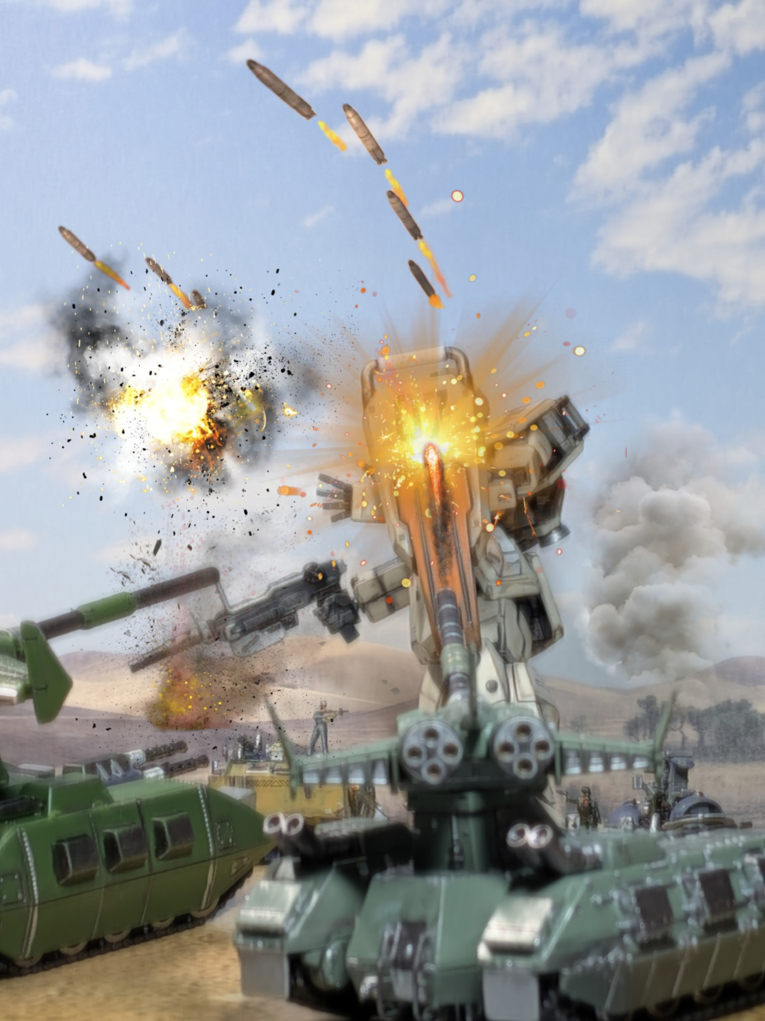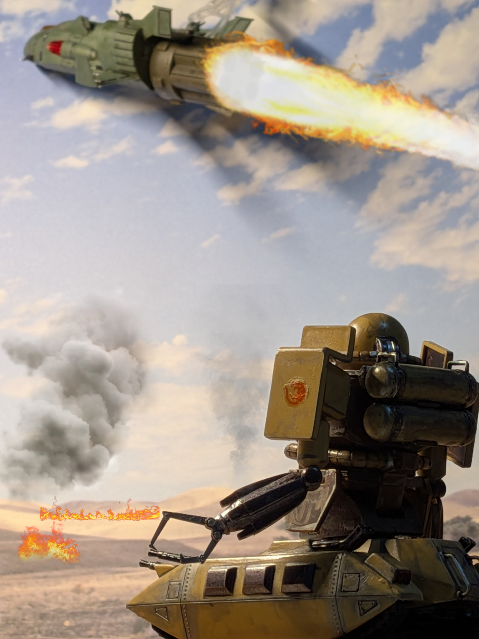 ちょっと縦にぼかしを入れて、ミサイルや爆発や煙のエフェクトを貼る加工をしました