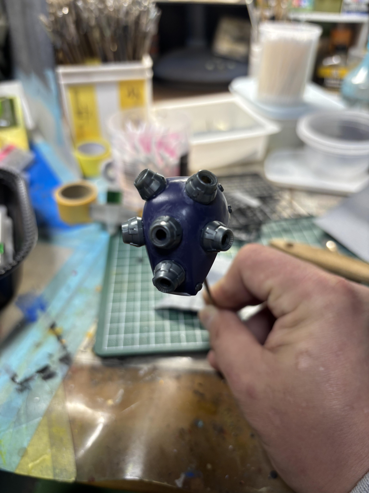 ブラックライトで モノアイをグポーン💡とさせて😊忘れてましたがモノアイもプラパイプと百均のケータイデコパーツで改造してあります。