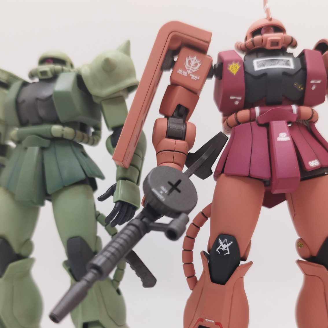 制作したHGUCシャア専用ゲルググと量産型ゲルググです。 今…