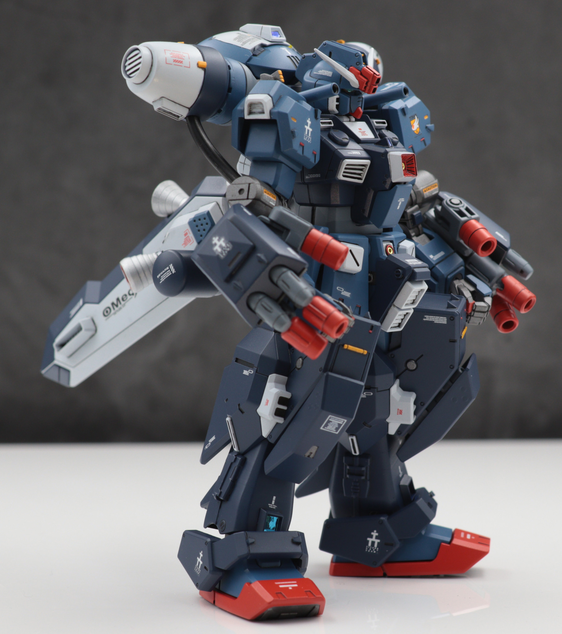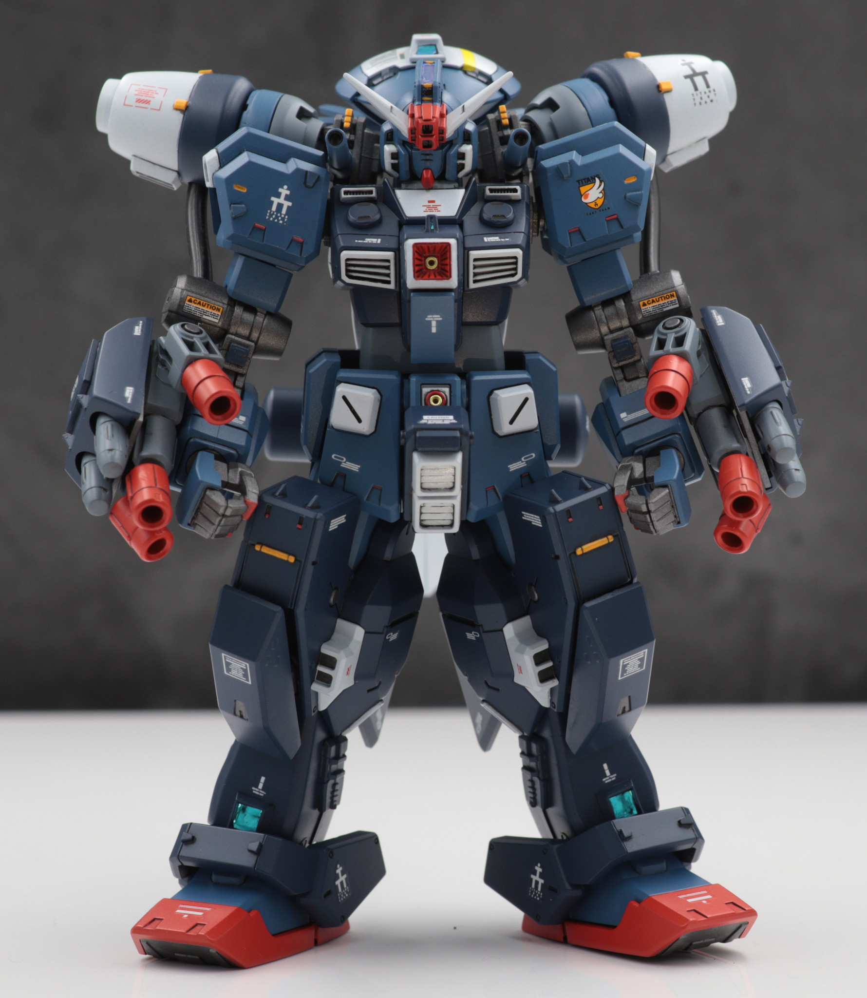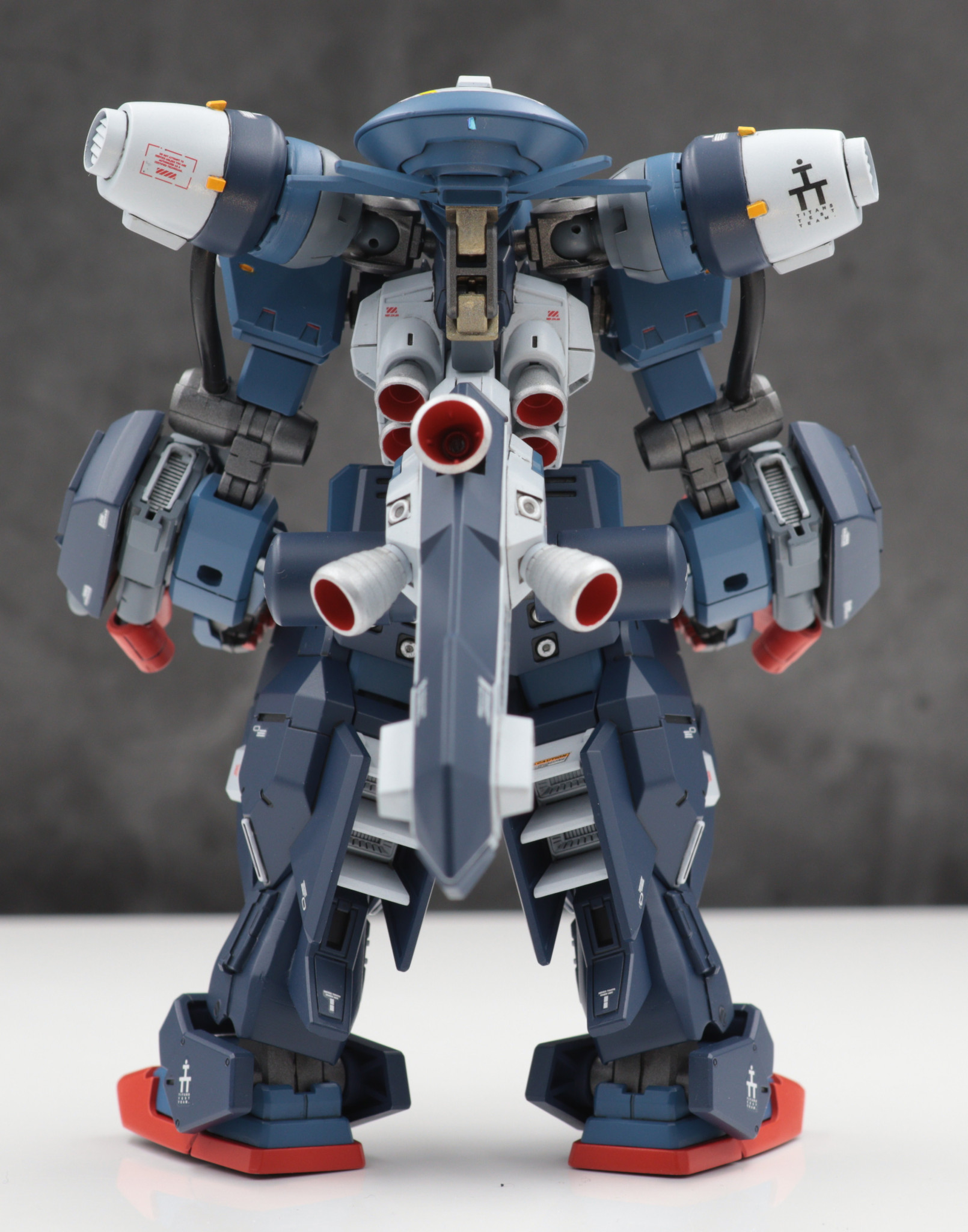 MSサイズにビーム兵器を積むにはエネルギーがすぐガス欠になると思い、バックパックは大型化。トライブースターやボリノークサマーンを参考に有線ケーブル収納タンクやプロペラントブースターにしてみました。